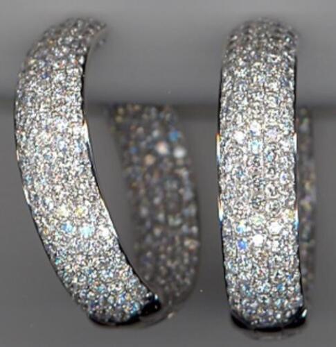 WIDE 6.65CT DIAMOND 18K WHITE GOLD 3D MULTI ROW INSIDE OUT HOOP HANGING EARRINGS