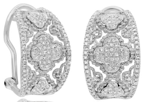 WIDE .60CT DIAMOND 14KT WHITE GOLD FLOWER OPEN FILIGREE CLASSIC CLIP ON EARRINGS