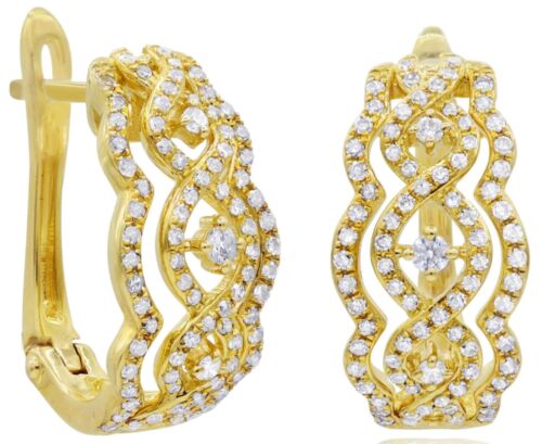 WIDE .63CT DIAMOND 14KT YELLOW GOLD 3D DOUBLE INFINITY FLORAL LEVERBACK EARRINGS