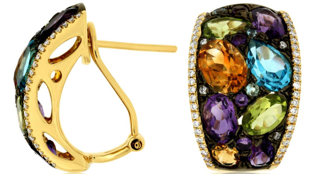 WIDE 7.1CT DIAMOND & AAAA MULTI GEM 14K YELLOW GOLD MULTI SHAPE HANGING EARRINGS