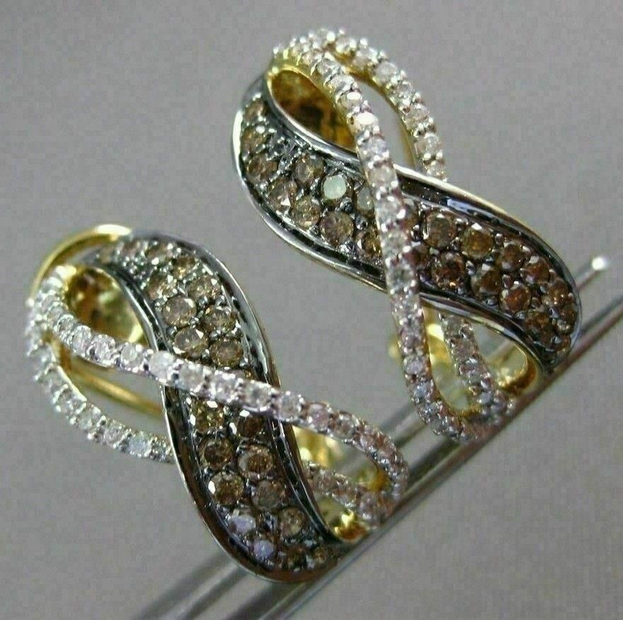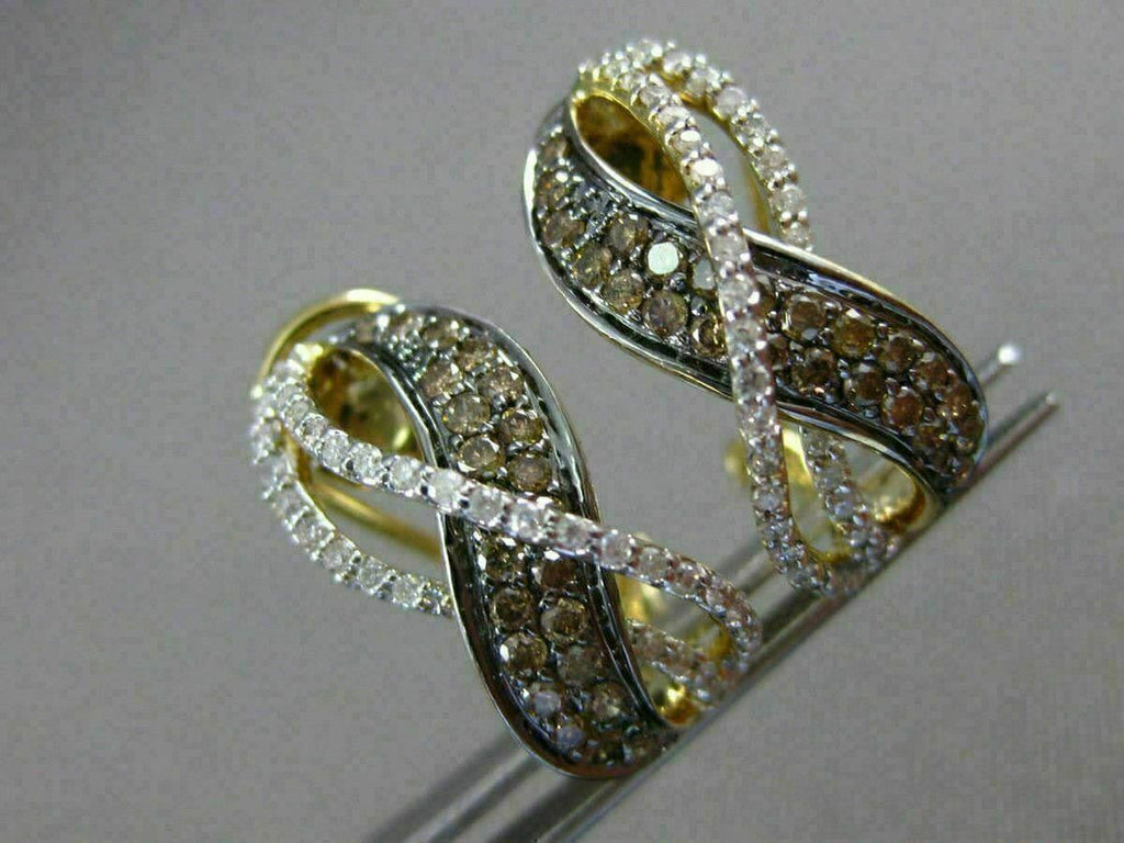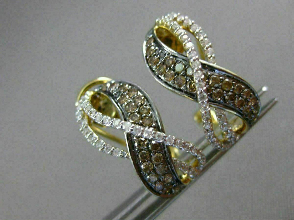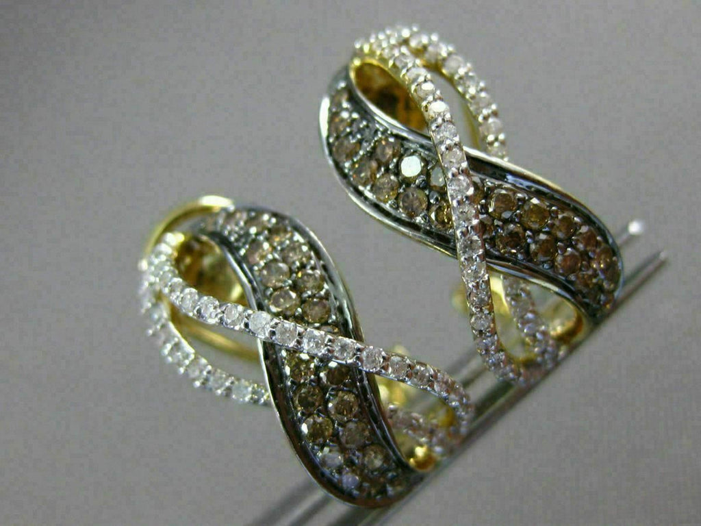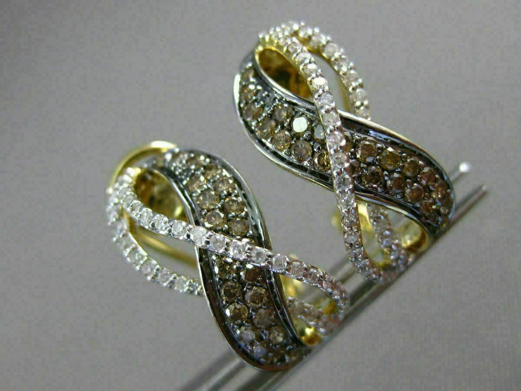 ESTATE WIDE 14KT YELLOW GOLD CLIP ON  EARRINGS. 3D MULTI ROW X LOVE  DESIGN. DIAMONDS ARE F/G COLOR, VSSI CLARITY .27 CARATS. CHOCOLATE FANCY DIAMONDS ARE .50 CARATS.  MEASURES 18mm X 8mm. WRITTEN APPRAISAL AVAILABLE. COMES IN A PRESENTABLE GIFT BOX.