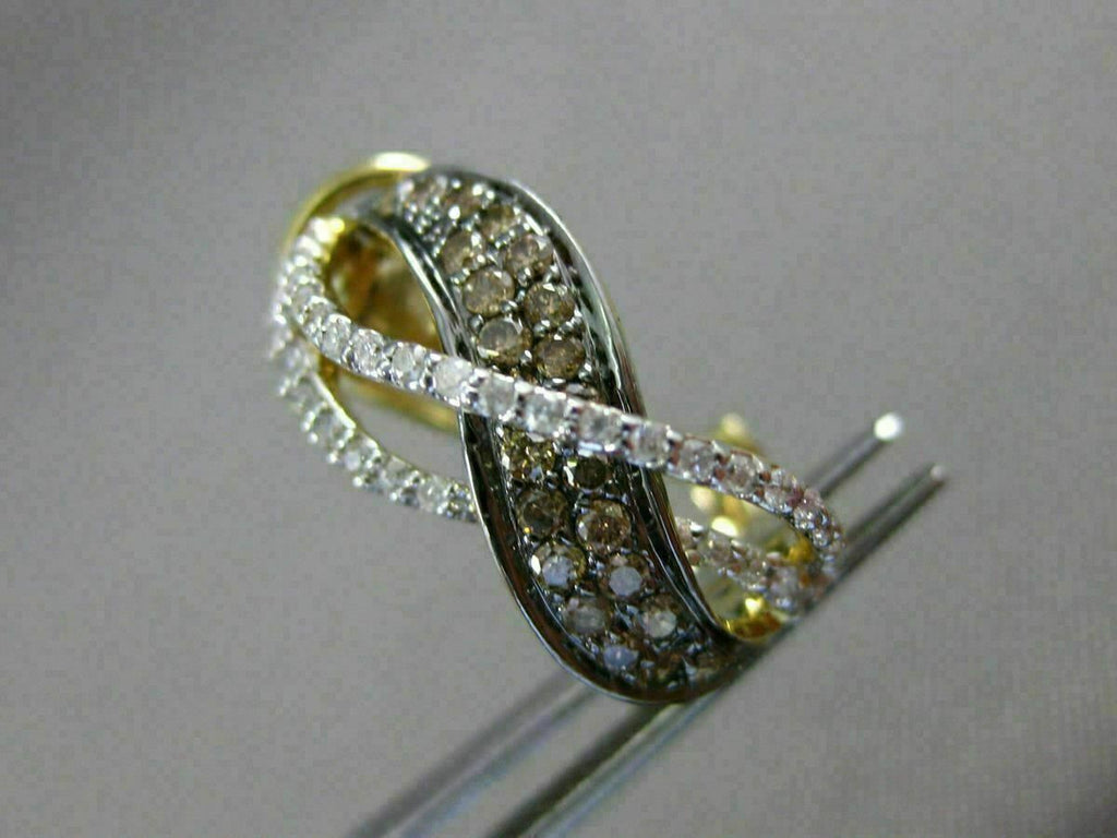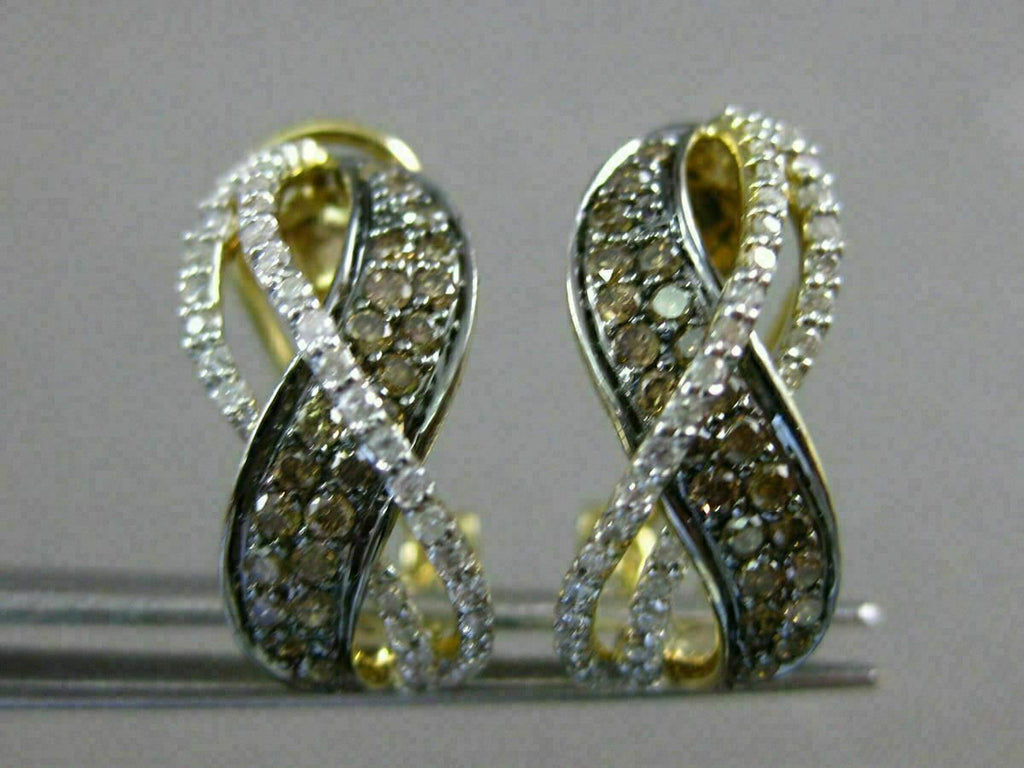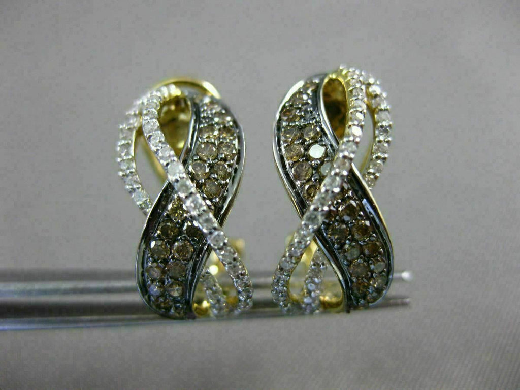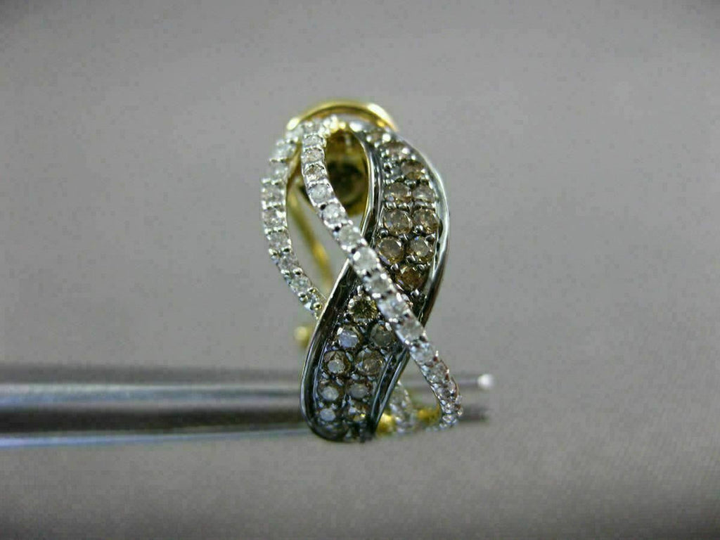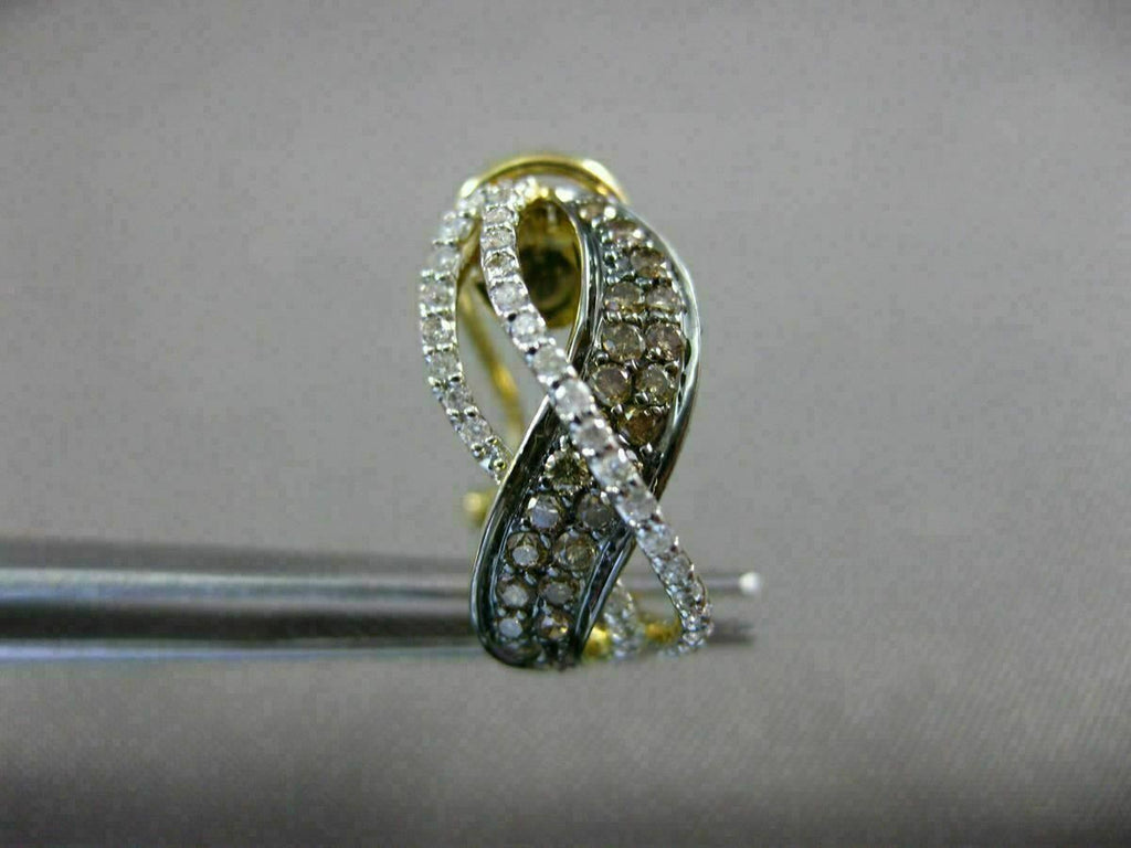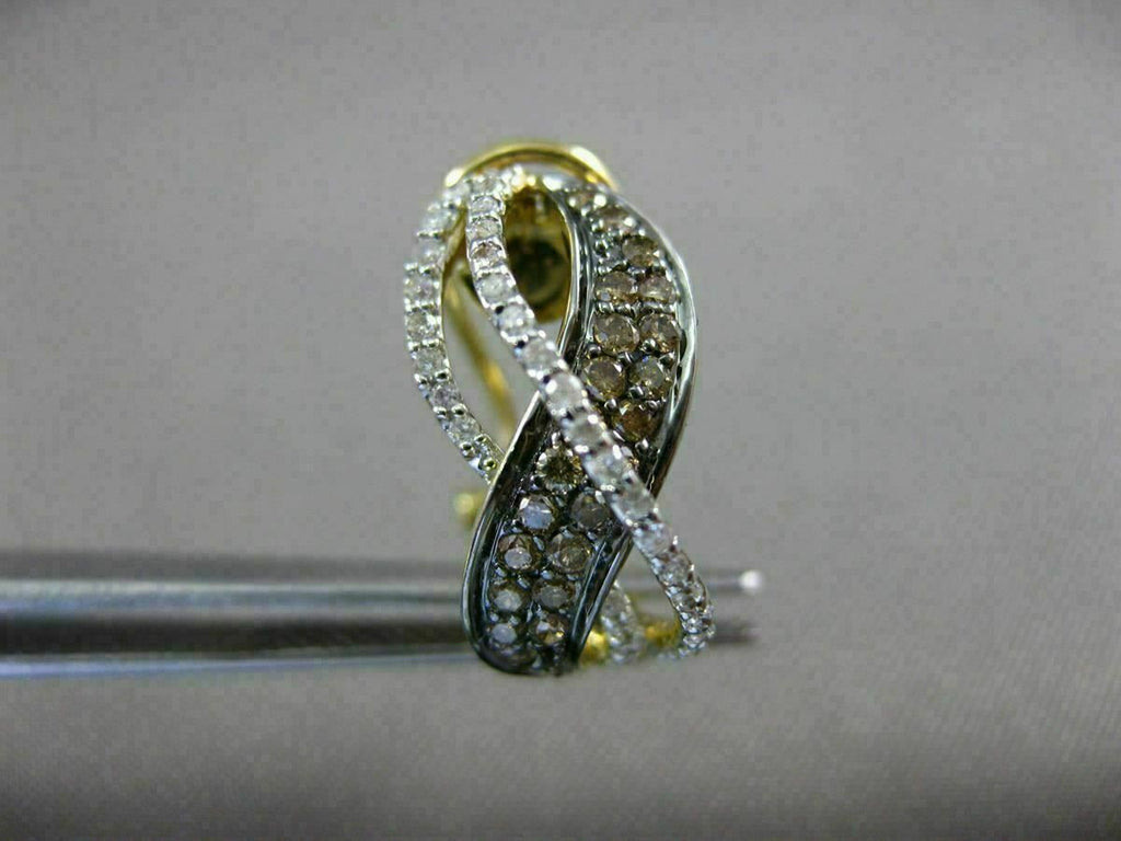 WIDE .77CT WHITE & CHOCOLATE FANCY DIAMOND 14KT YELLOW GOLD 3D CLIP ON EARRINGS