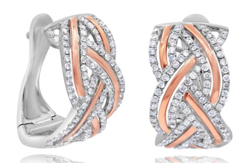 WIDE .81CT DIAMOND 14KT 2 TONE GOLD MULTI LEAF CRISS CROSS FUN HANGING EARRINGS