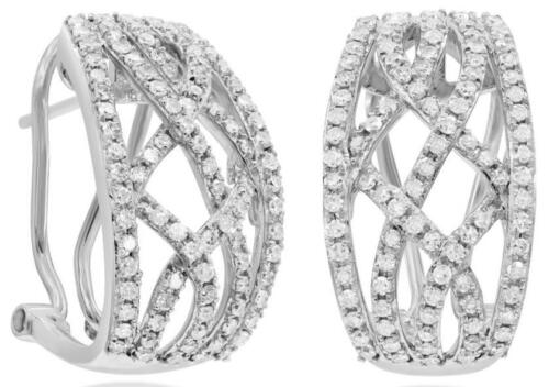 WIDE .82CT DIAMOND 14KT WHITE GOLD 3D CRISS CROSS FUN CLIP ON HANGING EARRINGS