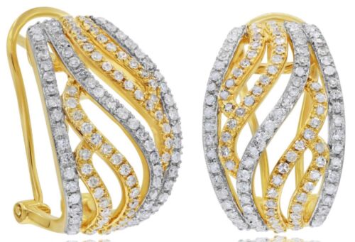 WIDE .87CT DIAMOND 14KT 2 TONE GOLD 3D MULTI ROW MULTI WAVE FUN HANGING EARRINGS