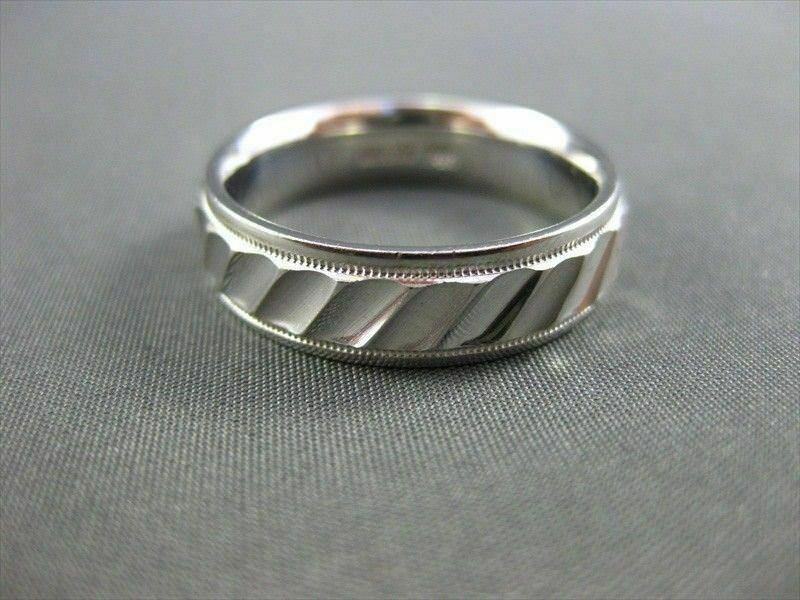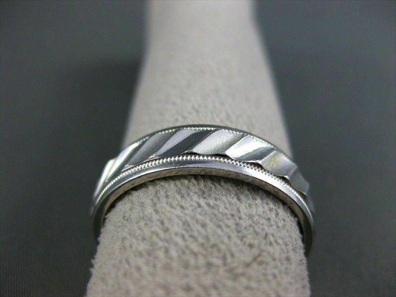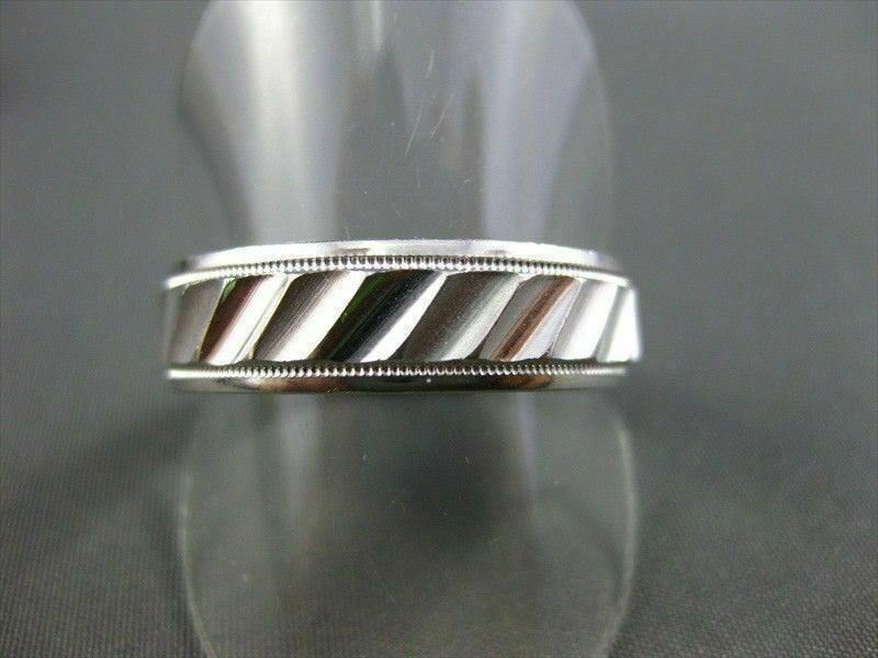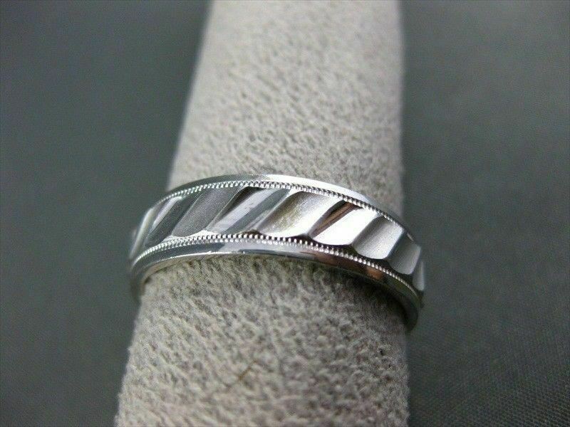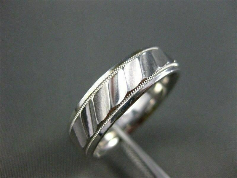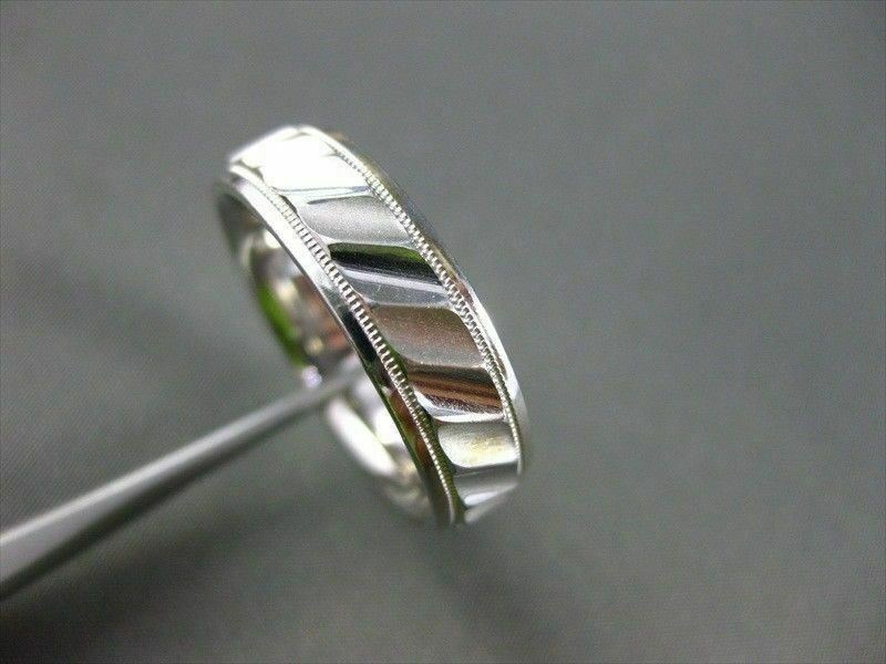 ESTATE 14KT WHITE GOLD MENS WEDDING RING. RIDGE DESIGN. 6MM WIDE. SIZE 10.50. SIZING CAN BE PROVIDED BY OUR MASTER JEWELER. APPRAISALS ARE AVAILABLE. COMES IN A PRESENTABLE GIFT BOX.
