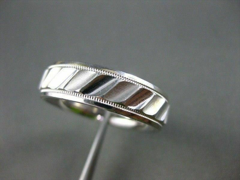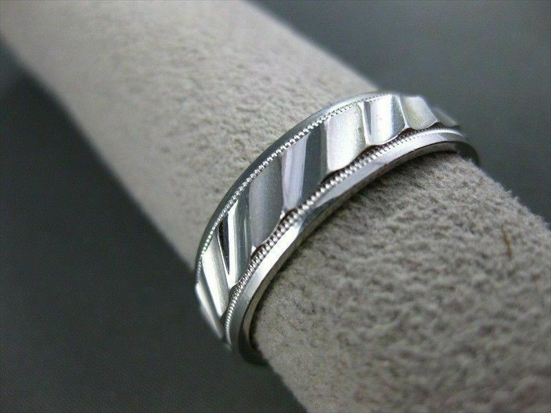 ESTATE WIDE 14KT SOLID WHITE GOLD RIDGE DESIGN MENS WEDDING RING HANDSOME #1218