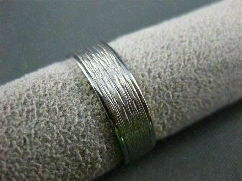 ESTATE WIDE 14KT WHITE GOLD SOLID STRIATED MATT MENS WEDDING RING BEAUTIFUL 1514