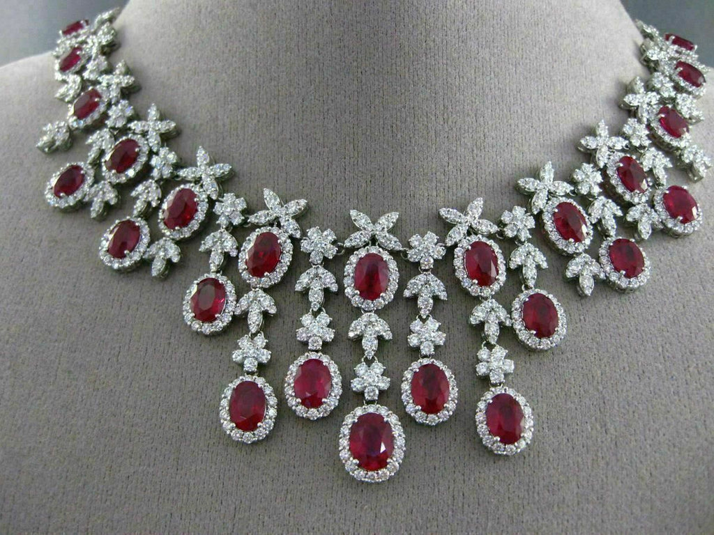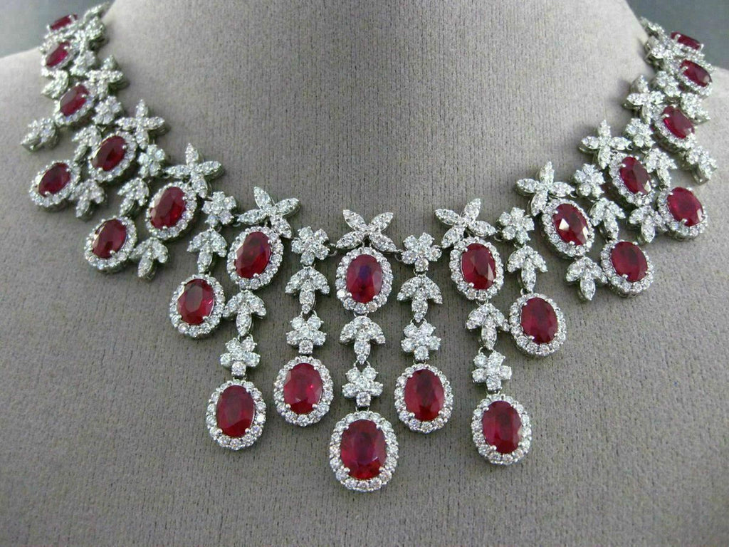 ESTATE EXTRA LARGE CERTIFIED 43.78CT DIAMOND & RUBY 18KT WHITE GOLD NECKLACE E/F