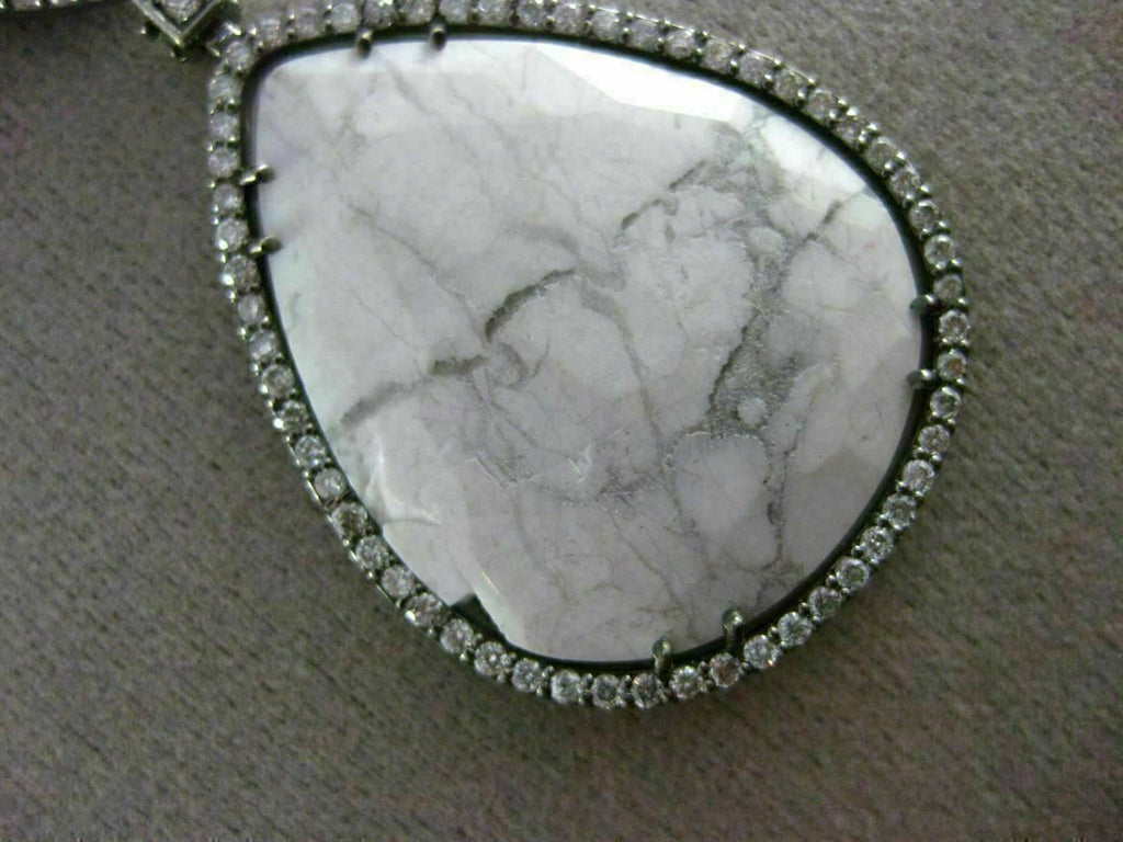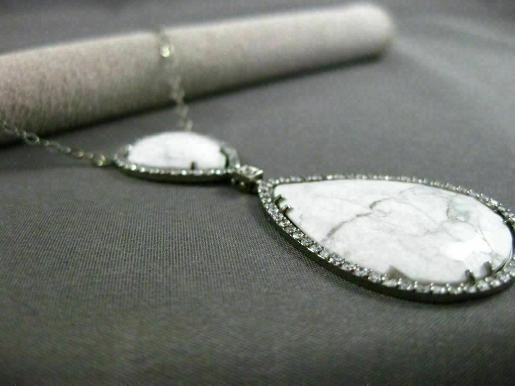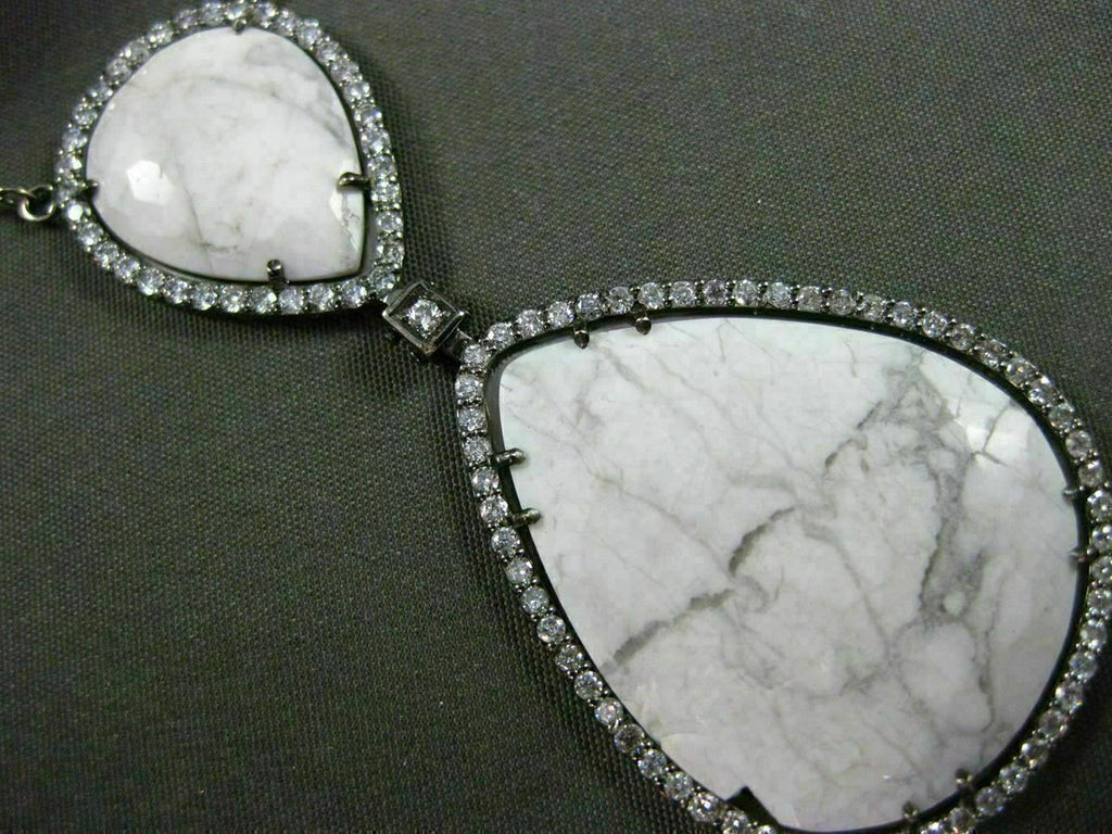 ESTATE LARGE 14KT WHITE & BLACK GOLD NECKLACE. 3D BY THE YARD DESIGN. DIAMONDS ARE F/G COLOR, VSSI CLARITY 1.49 CARATS. CONSISTS OF EXTRA FACET AAA WHITE ONYX. DROP MEASURES 61mm X 27mm. COMES ON A 14KT GOLD DIAMOND BY THE YARD 17.25" INCH CHAIN. WRITTEN APPRAISAL AVAILABLE. COMES IN A PRESENTABLE GIFT BOX.