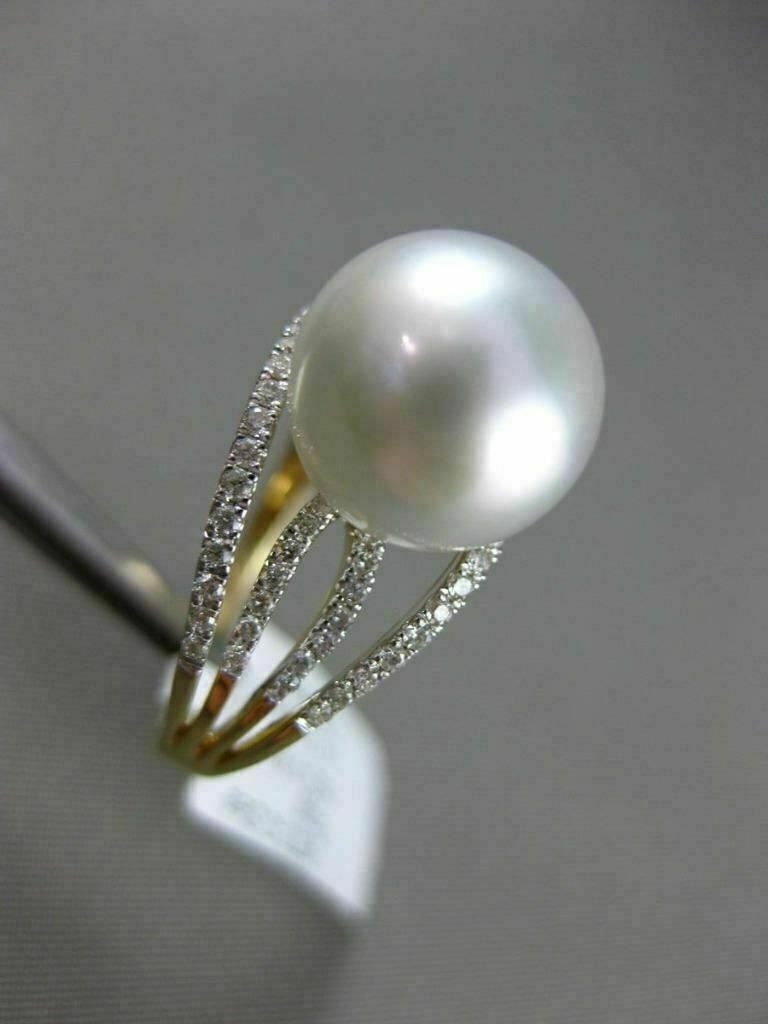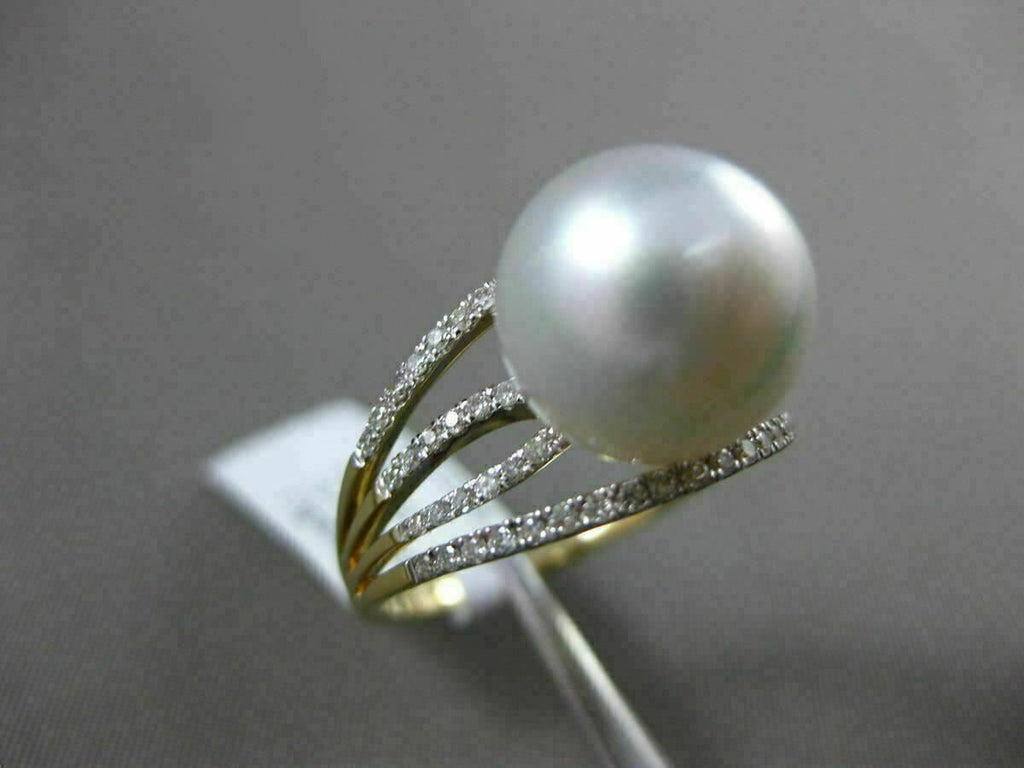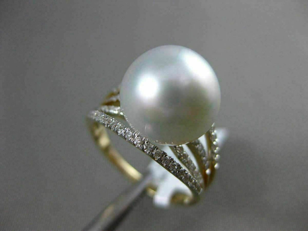 ESTATE .32CT DIAMOND 14KT WHITE & YELLOW GOLD AAA SOUTH SEA PEARL MULTI ROW RING