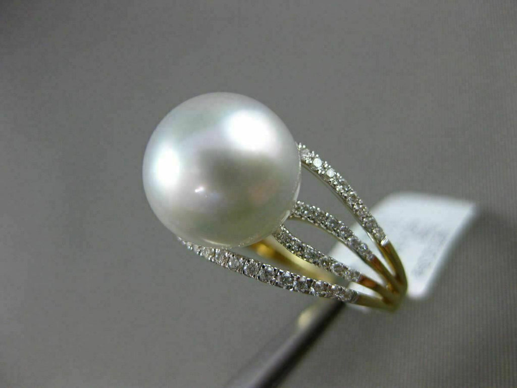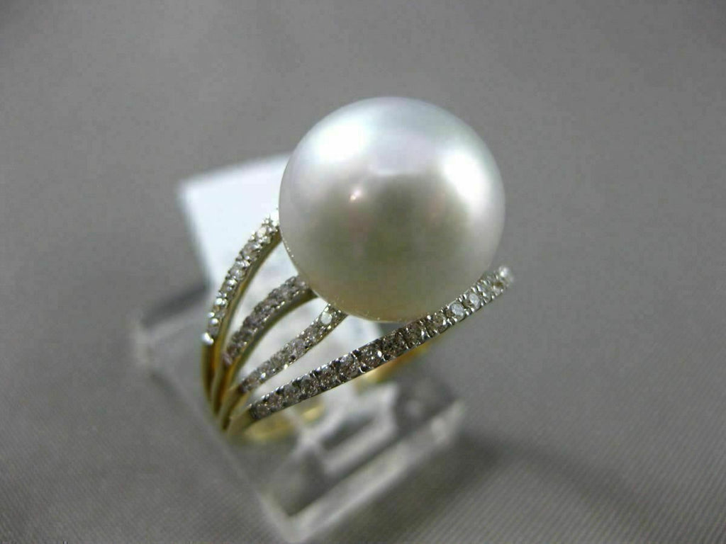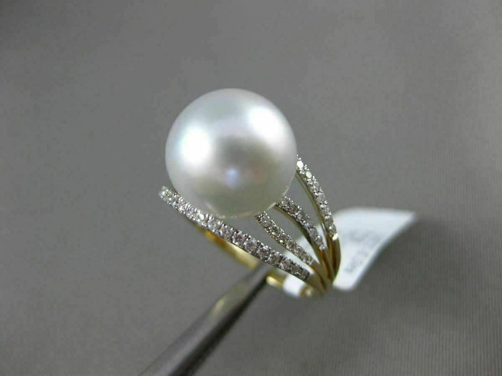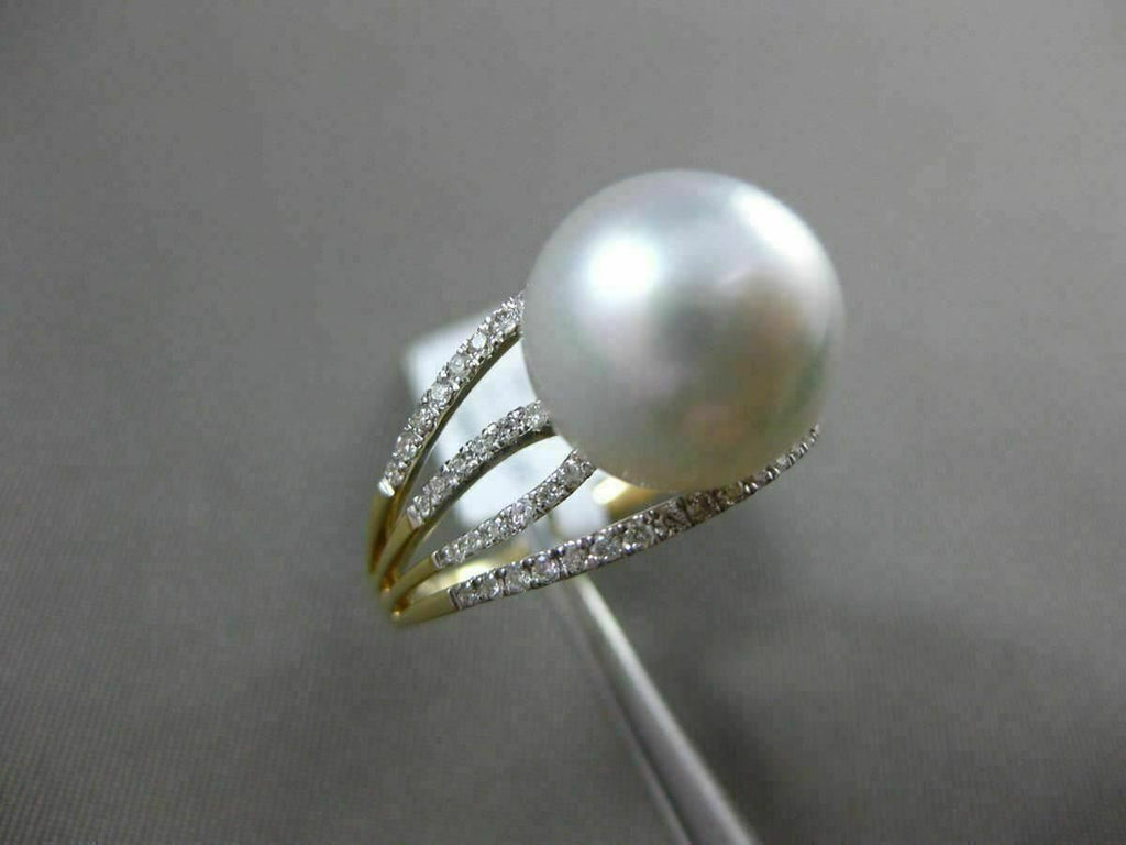 ESTATE 14KT WHITE GOLD RING. 3D MULTI ROW SOLITAIRE DESIGN. DIAMONDS ARE F/G COLOR, VVS/VS CLARITY .32 CARATS. FEATURES AAA SOUTH SEA PEARL (10.50mm). MEASURES 11mm WIDE. RING SIZE IS 6.75. WRITTEN APPRAISAL AVAILABLE. COMES IN A PRESENTABLE GIFT BOX.