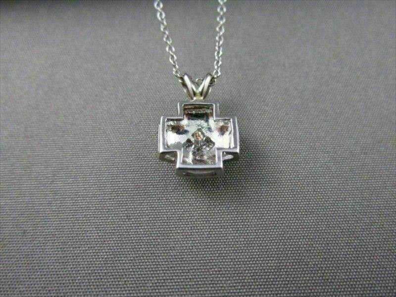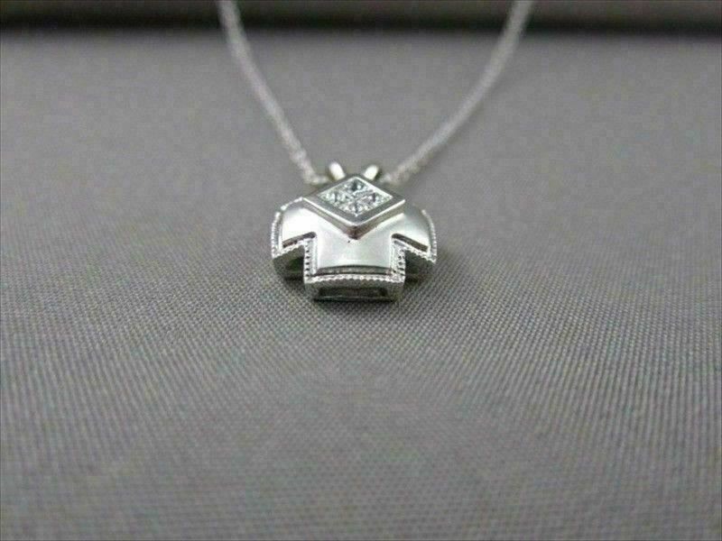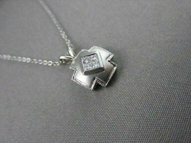 ESTATE 14K WHITE GOLD PENDANT. PRINCESS CUT INVISIBLE PLUS DESIGN. DIAMOND ARE F/G COLOR, VVS CLARITY .16 CARATS. MEASURES 15MM x 10MM. COMES WITH 14KT GOLD DIAMOND CUT CHAIN. WRITTEN APPRAISAL AVAILABLE. COMES IN A PRESENTABLE GIFT BOX.