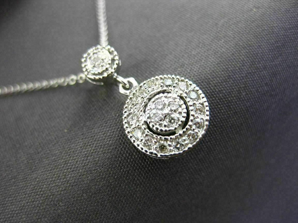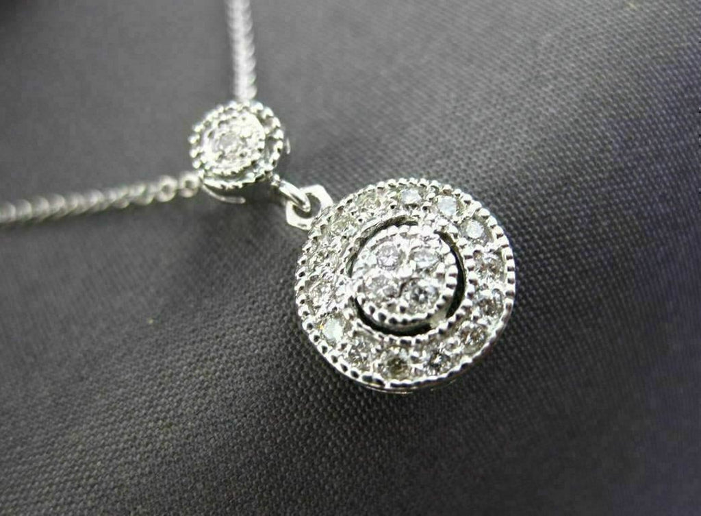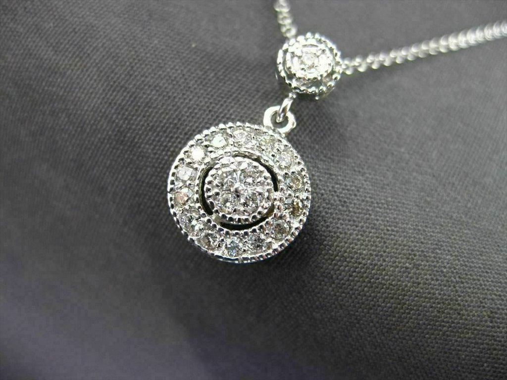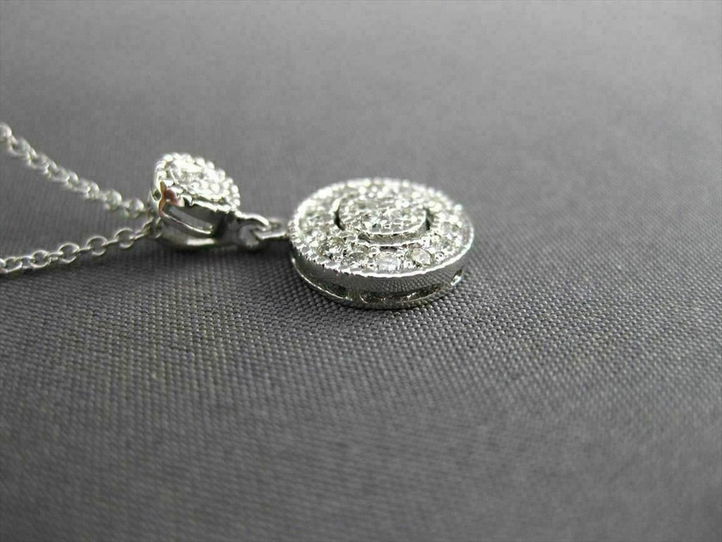 ESTATE .19CT DIAMOND 14KT WHITE GOLD FLOATING DOUBLE HALO CIRCLE PENDANT & CHAIN