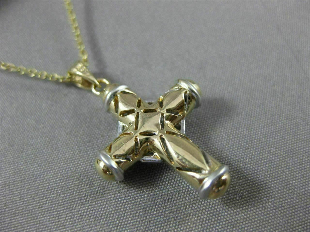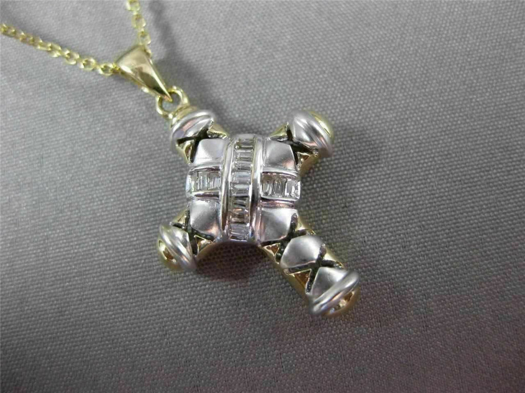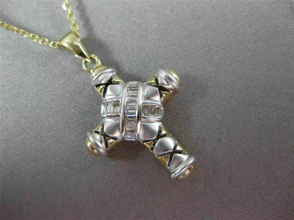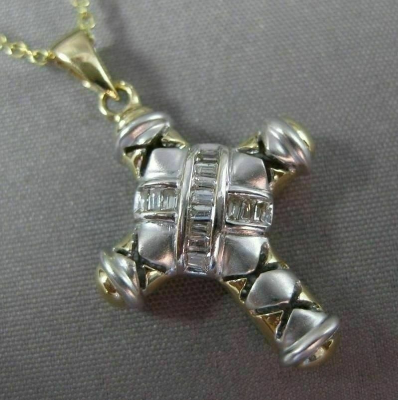 ESTATE .25CT BAGUETTE DIAMOND 14KT WHITE & YELLOW GOLD 3D CROSS PENDANT #11457