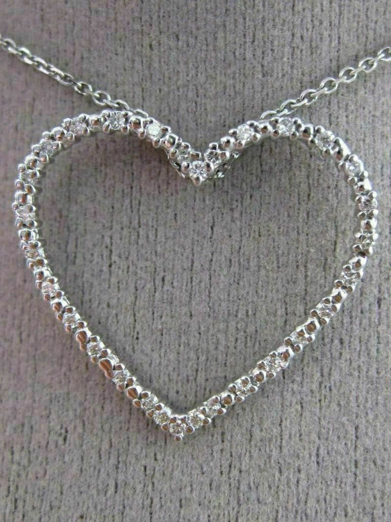 ESTATE .28CT DIAMOND 14K WHITE GOLD 3D OPEN HEART ETERNITY LOVE PENDANT W/ CHAIN