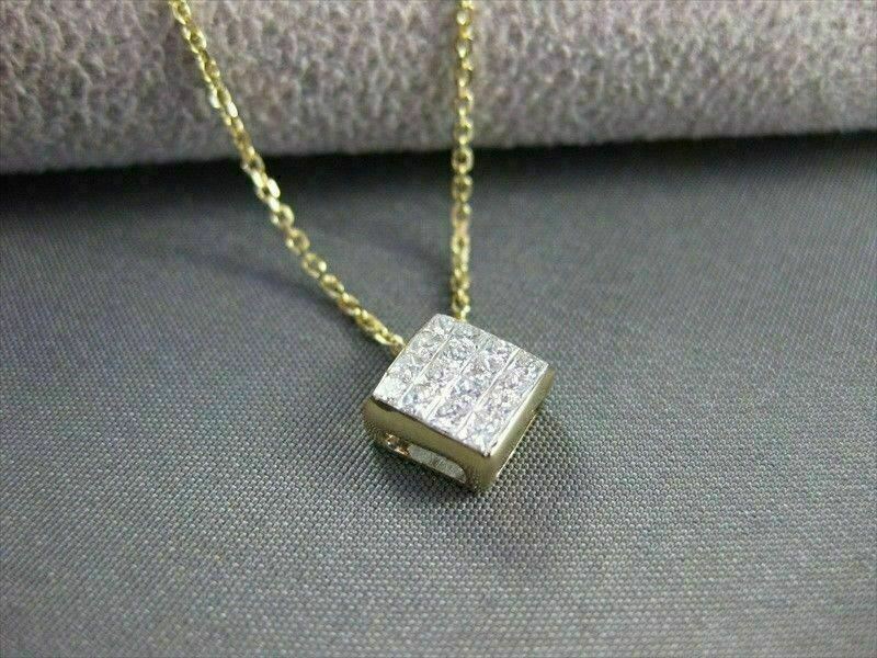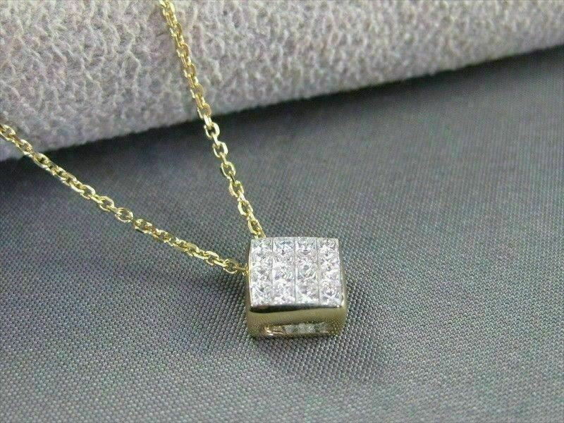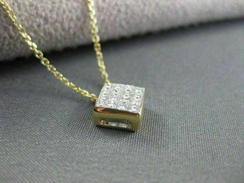 ESTATE .39CT INVISIBLE DIAMOND SQUARE 14K YELLOW GOLD PENDANT 18" CHAIN #15617