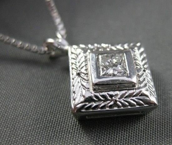 ESTATE .50CT PRINCESS DIAMOND SOLITARE 14KT W GOLD FILIGREE SQUARE PENDANT 4240