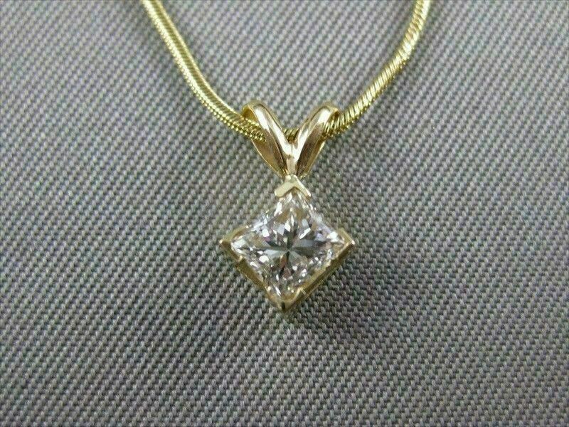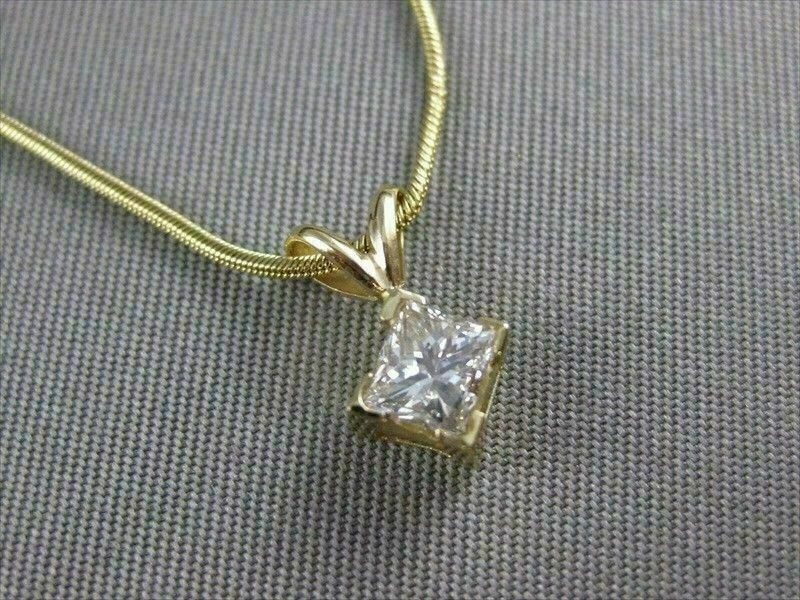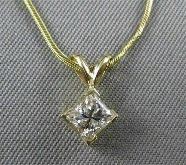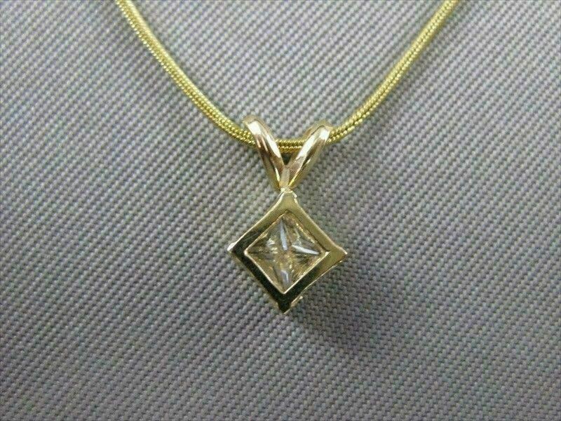 ESTATE .53CT PRINCESS DIAMOND SOLITAIRE 14K GOLD HANGING PENDANT FANCY 16" #5251