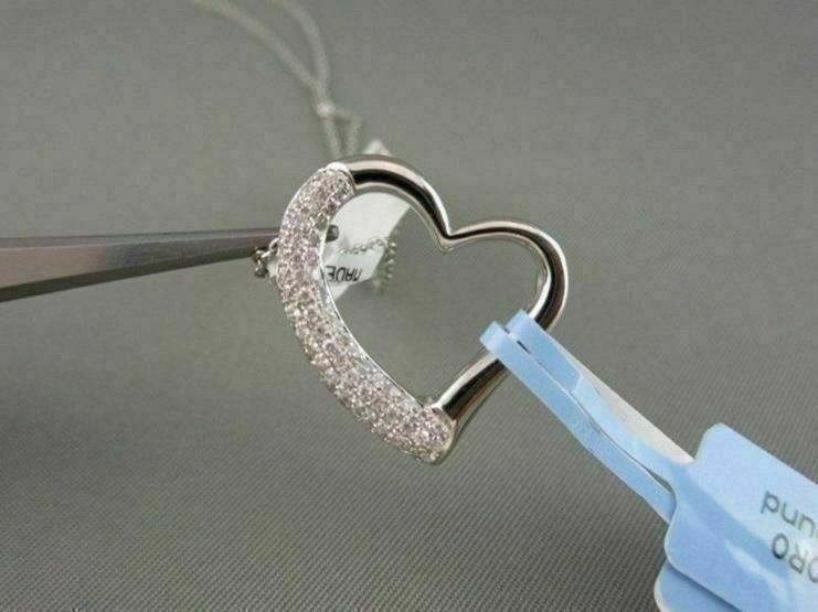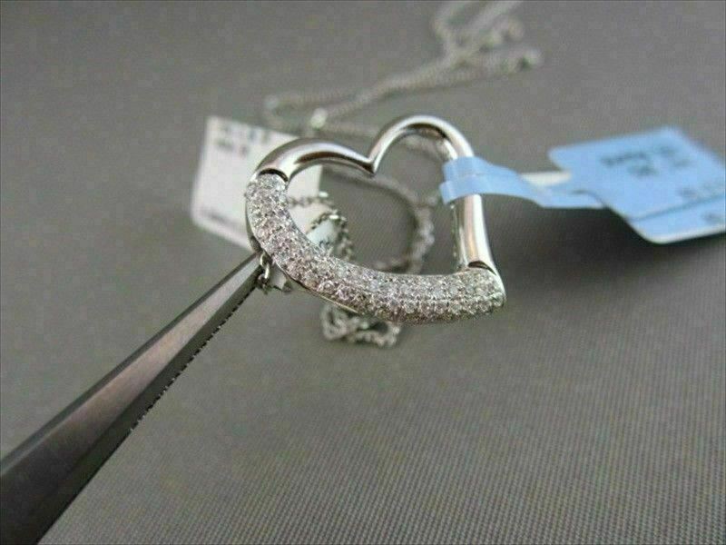 ANTIQUE 14KT WHITE GOLD PENDANT. OPEN MICRO PAVE HEART DESIGN. DIAMONDS ARE G/H COLOR, VS/SI1 CLARITY .58 CARATS. MEASURES 20mm X 21mm. COMES ON A 14KT GOLD DIAMOND CUT 18" INCH CHAIN. APPRAISALS ARE AVAILABLE UPON REQEST. COMES IN A PRESENTABLE GIFT BOX.