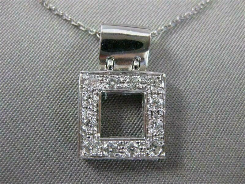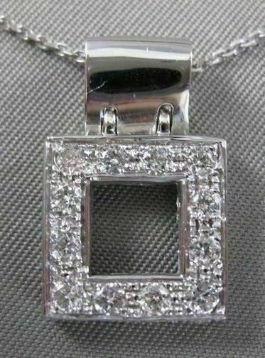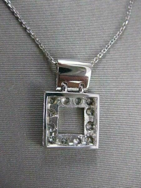 ESTATE 14K WHITE GOLD PENDANT. SQUARE WINDOW DESIGN. DIAMONDS ARE F/G COLOR, VVS/VS CLARITY, .77 CARATS. MEASURES 13MM x 13MM. 7MM BALE. SET ON A 14K DIAMOND CUT CHAIN. WRITTEN APPRAISAL AVAILABLE. COMES IN A GIFT BOX.