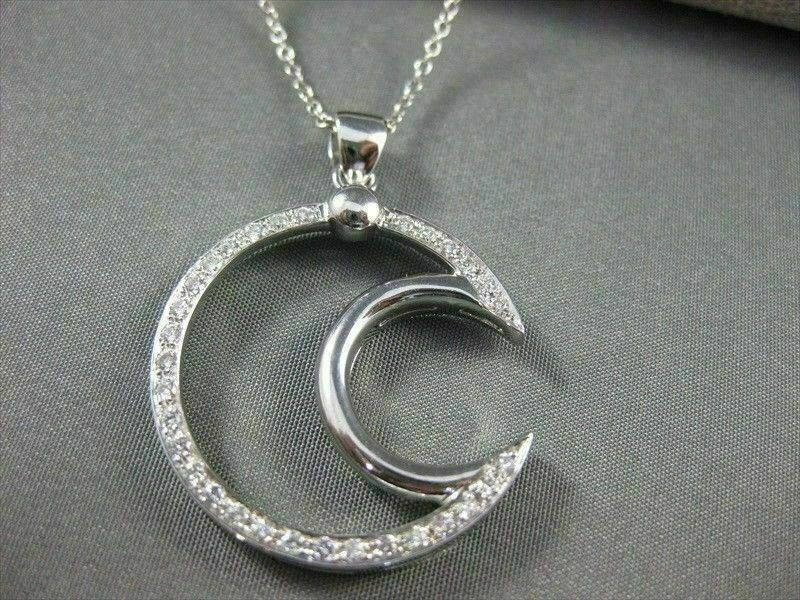 ANTIQUE 14KT WHITE GOLD PENDANT. MOON DESIGN. DIAMONDS ARE F/G COLOR, VS CLARITY AND HAVE A TOTAL OF .80 CARATS. DIMENSIONS ARE 28mm X 38mm. WRITTEN APPRAISAL AVAILABLE. COMES IN A PRESENTABLE GIFT BOX.
