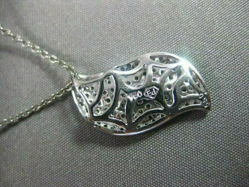 ESTATE .90CT DIAMOND 18KT WHITE GOLD WAVE PENDANT WITH CHAIN BEAUTIFUL #22308