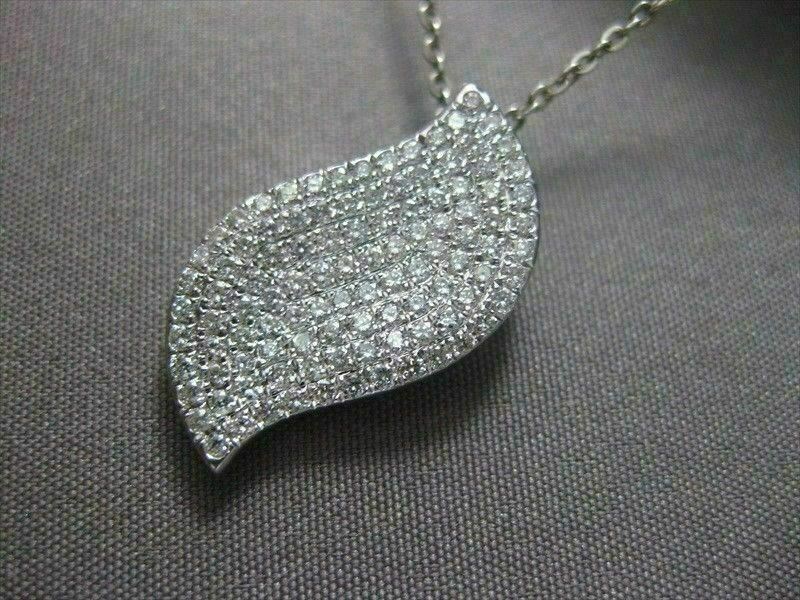 ESTATE 18KT WHITE GOLD PENDANT. PAVE WAVE DESIGN. DIAMONDS ARE F/G COLOR, VS CLARITY .90 CARAT. MEASURES 20MM x 12MM. COMES ON A 16 INCHES 14K DIAMOND CUT CHAIN. WRITTEN APPRAISAL AVAILABLE. COMES IN A PRESENTABLE GIFT BOX