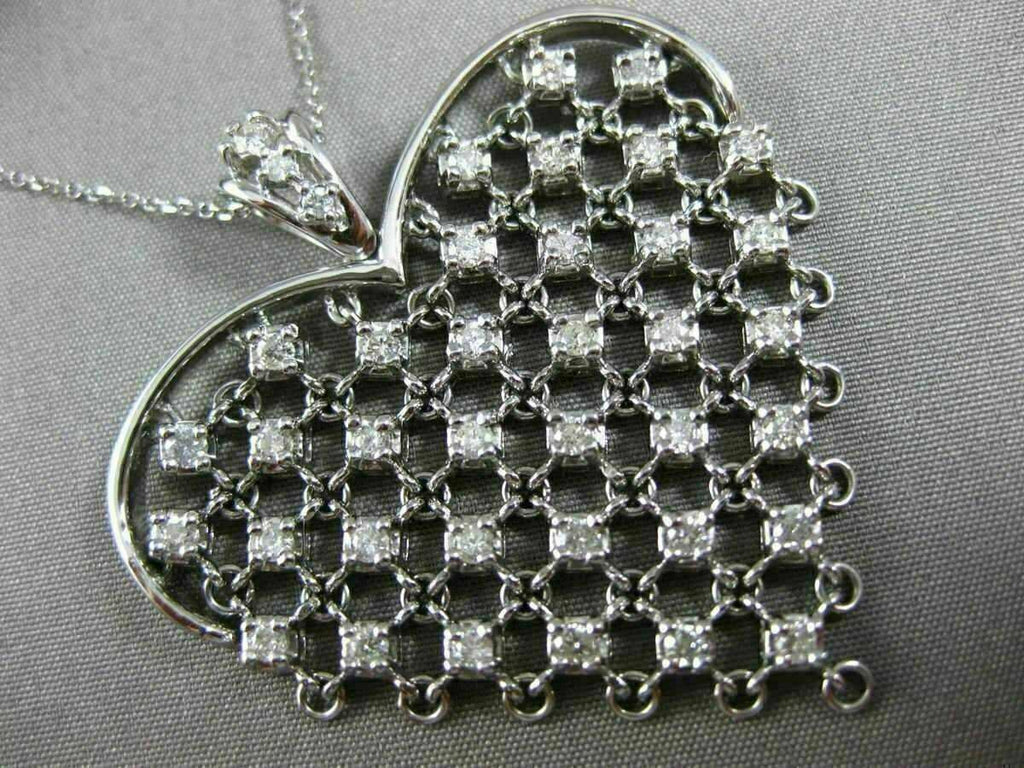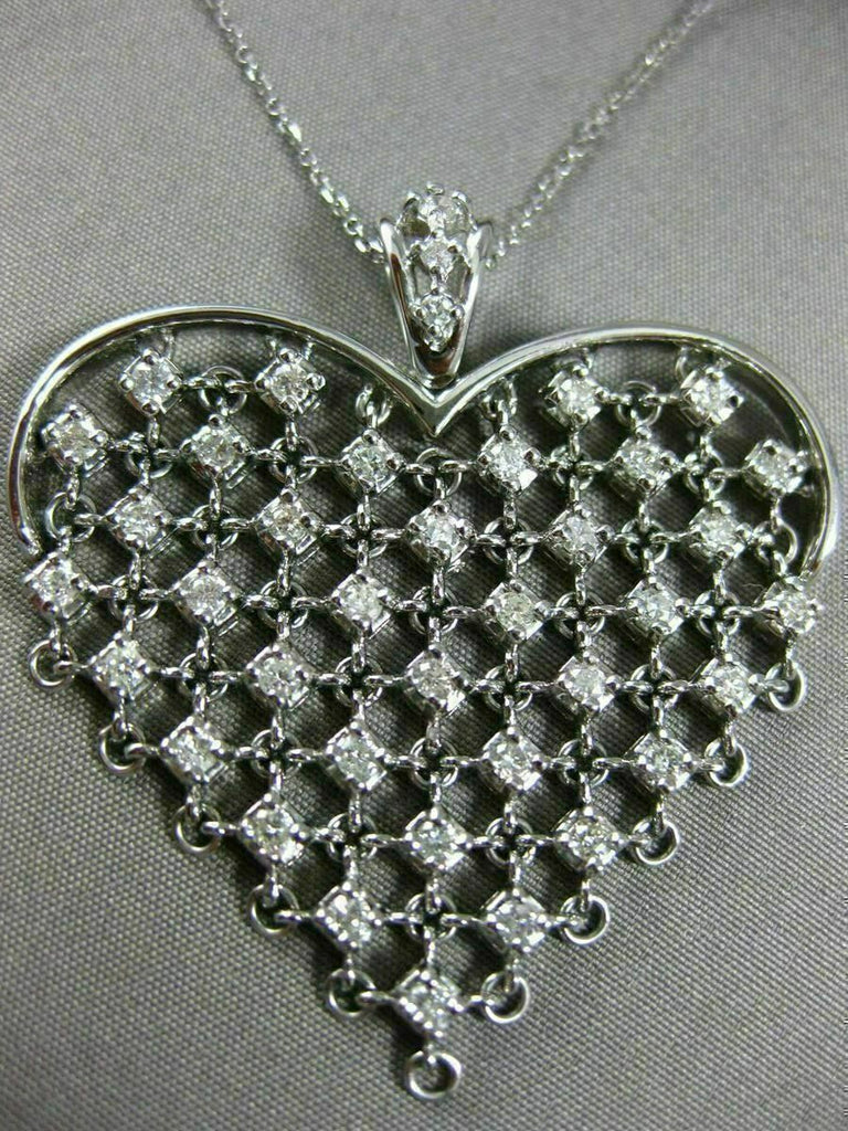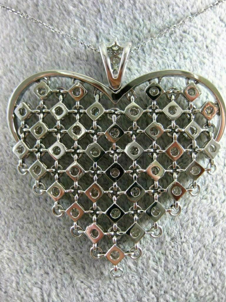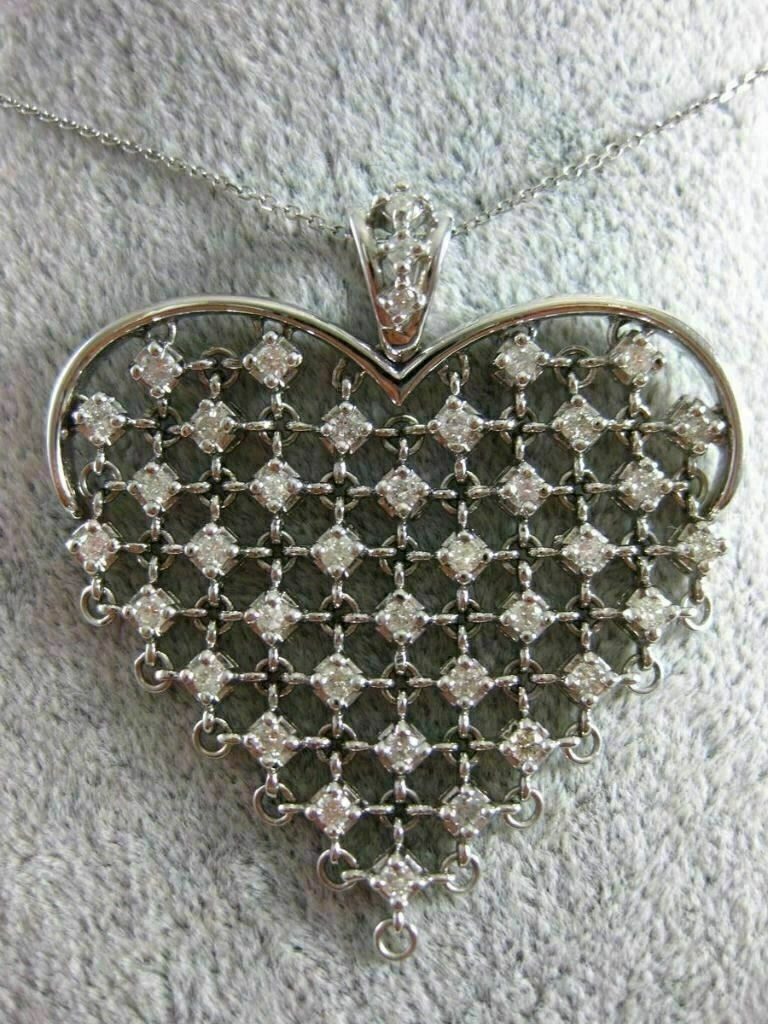 ESTATE LARGE 14KT WHITE GOLD LOVE FLOATING PENDANT. 3D HANDCRAFTED ETOILE FLEXIBLE HEART DESIGN. DIAMONDS ARE F/G COLOR, VSSI CLARITY 1.10 CARATS. MEASURES 42mm X 40mm. 16" INCHES LONG. WRITTEN APPRAISAL AVAILABLE. COMES IN A PRESENTABLE GIFT BOX.