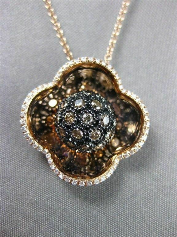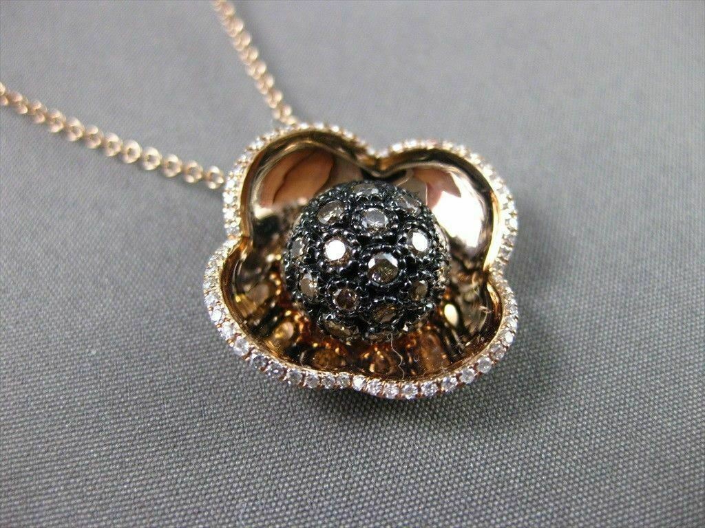 ESTATE LARGE 1.25CT DIAMOND 4 LEAF CLOVER 14K BLACK & ROSE GOLD FLOATING PENDANT