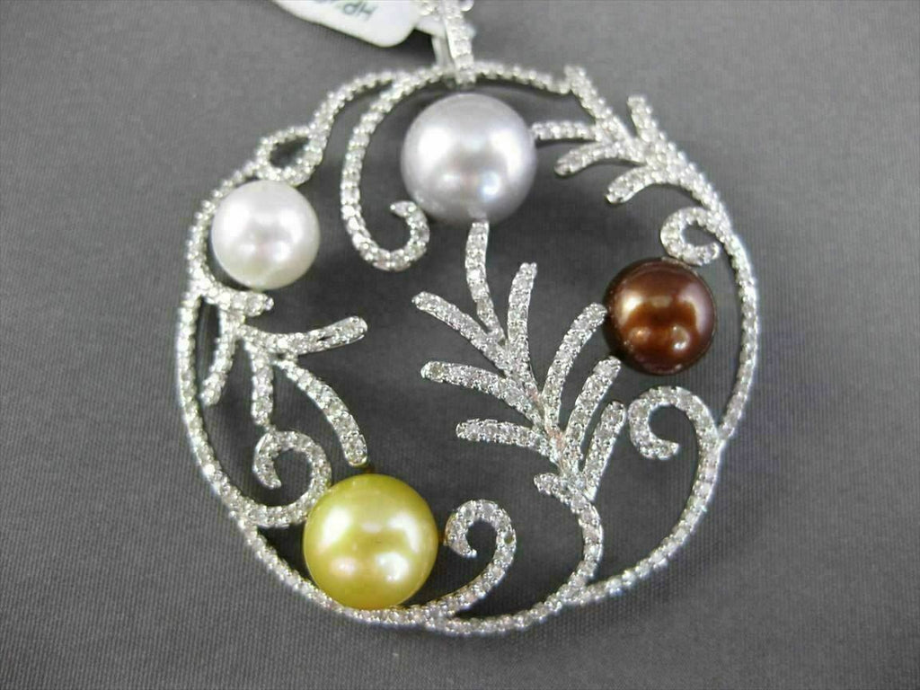 ESTATE LARGE 1.30CT DIAMOND & MULTI COLOR PEARL 18K WHITE GOLD FLOATING PENDANT
