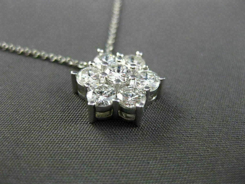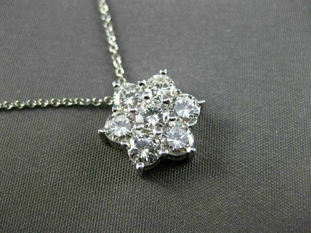 ESTATE LARGE 1.50CT DIAMOND 14K WHITE GOLD 3D FLOWER STAR FLOATING PENDANT CHAIN
