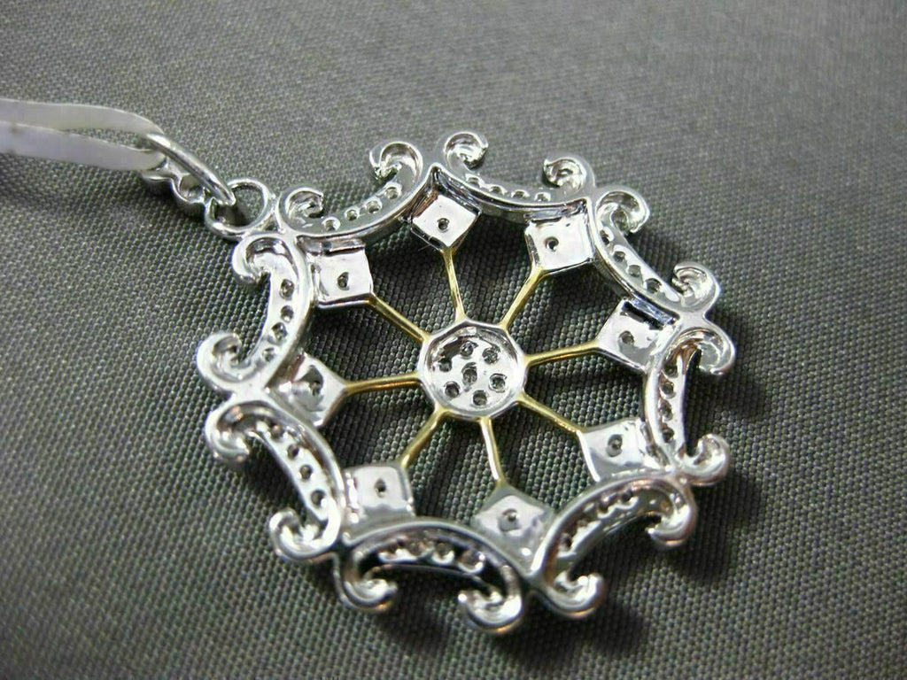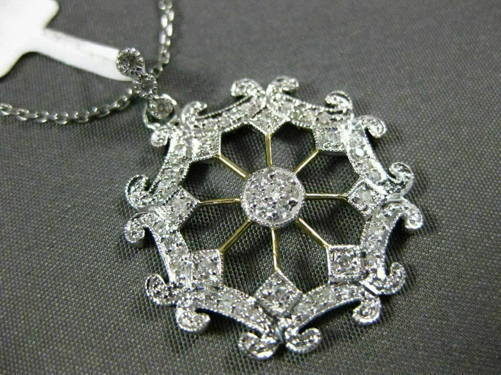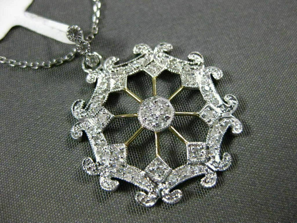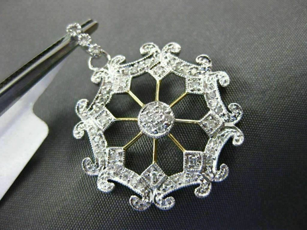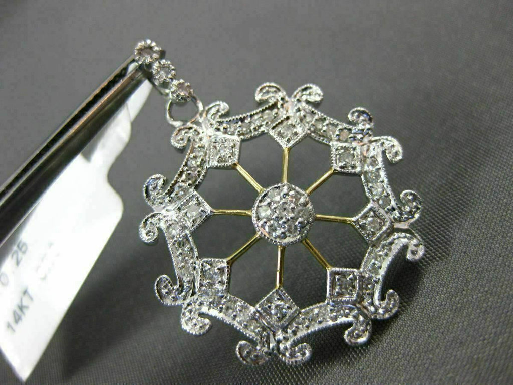 ESTATE LARGE .25CT DIAMOND 14KT WHITE & YELLOW GOLD 3D SNOWFLAKE FILIGRE PENDANT