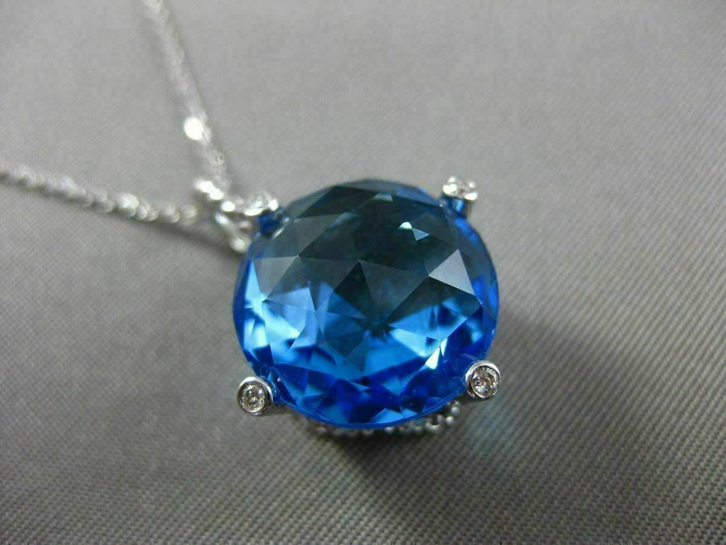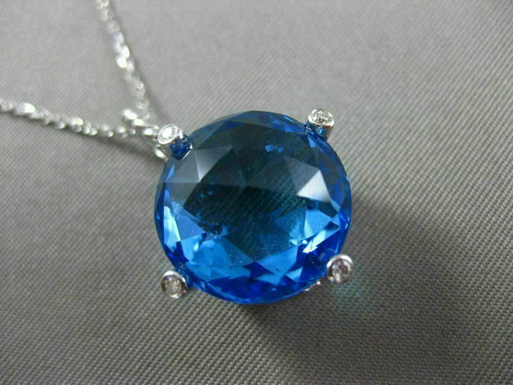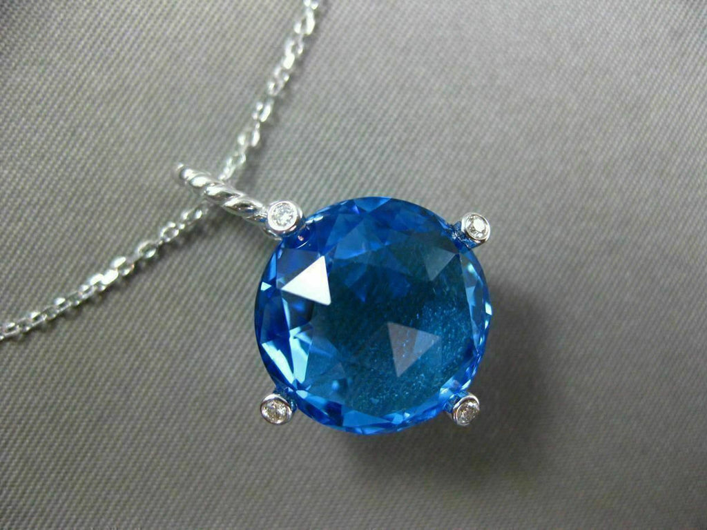 ESTATE MASSIVE 14KT WHITE GOLD FLOATING PENDANT. 3D ETOILE ROPE DESIGN. DIAMONDS ARE F/G COLOR, VSSI CLARITY .04 CARATS. AAA EXTRA FACET BLUE TOPAZ IS 13.16 CARATS. MEASURES 24mm x 17mm WIDE. COMES ON A 14KT GOLD DIAMOND CUT 16" INCH CHAIN. WRITTEN APPRAISAL AVAILABLE. COMES IN A PRESENTABLE GIFT BOX.