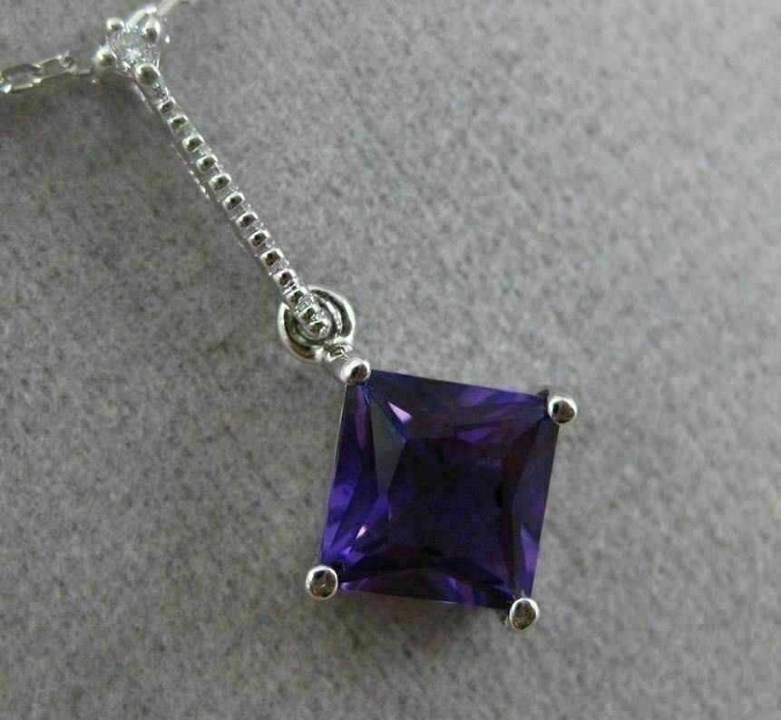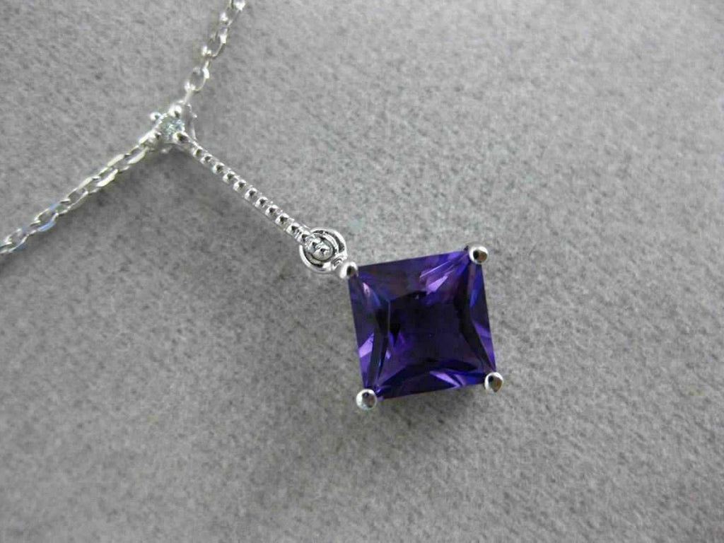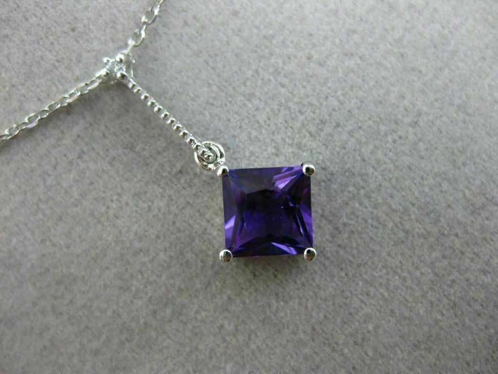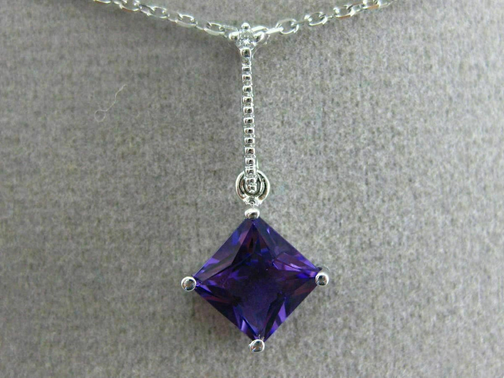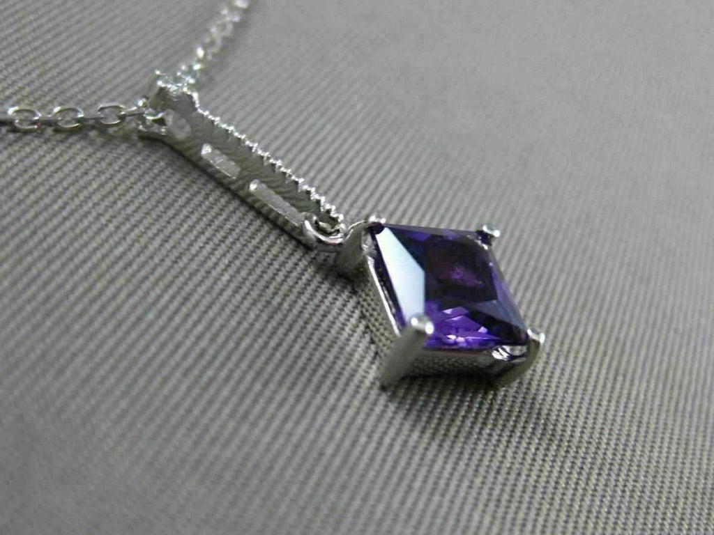 ESTATE 14KT WHITE GOLD FLOATING PENDANT. 3D ETOILE ELONGATED SQUARE DESIGN. DIAMONDS ARE F/G COLOR, VVSI CLARITY .01 CARATS. EXTRA FACET AMETHYST IS 1.05 CARATS. MEASURES 21mm x 9.5mm WIDE. COMES ON A 14KT GOLD DIAMOND CUT 16" INCH CHAIN. WRITTEN APPRAISAL AVAILABLE. COMES IN A PRESENTABLE GIFT BOX.