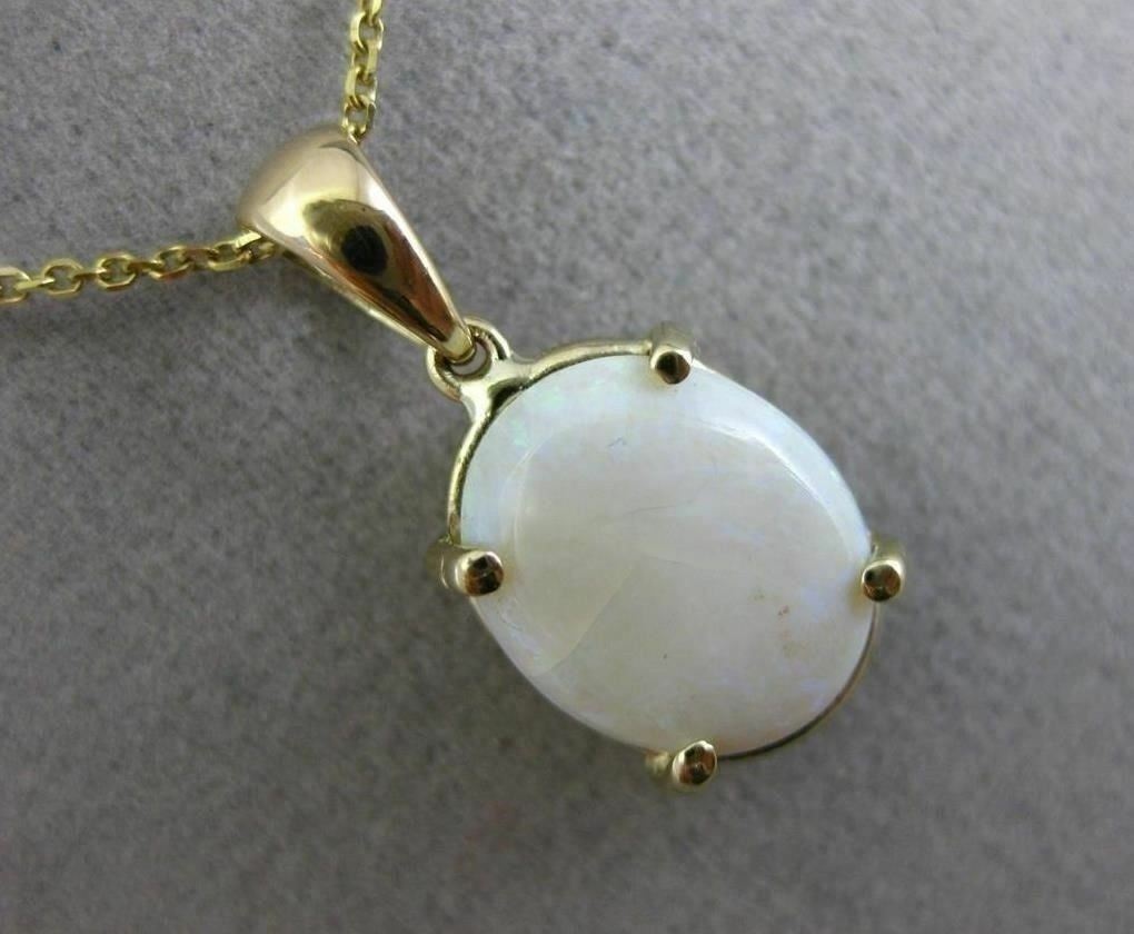 ESTATE 14KT YELLOW GOLD FLOATING PENDANT. 3D OVAL DESIGN. AAA OPAL IS 2.22 CARATS. MEASURES 22mm X 10mm WIDE. COMES ON A 14KT GOLD DIAMOND CUT 16" INCH CHAIN. WRITTEN APPRAISALS ARE AVAILABLE. COMES IN A PRESENTABLE GIFT BOX.