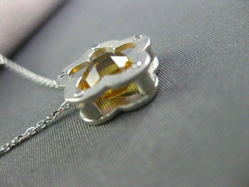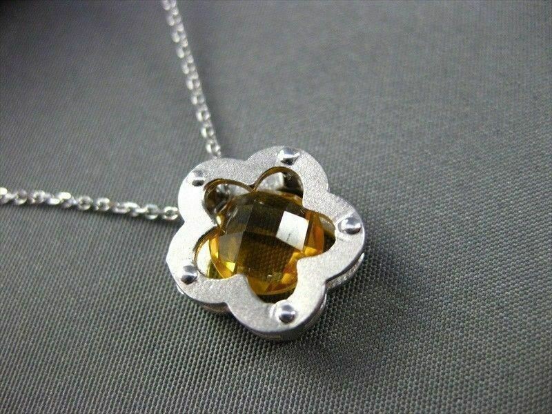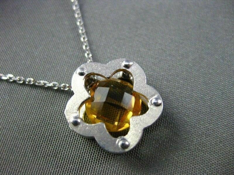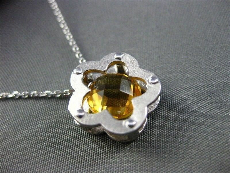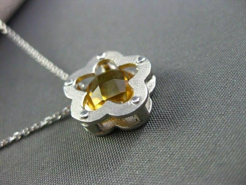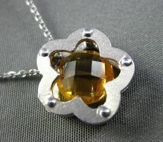 ESTATE 14K YELLOW GOLD PENDANT. SOLITARE FLOWER DESIGN. AAA CITRINE IS 2.60 CARATS. MEASURES 13MM x 13MM. COMES ON A 14K DIAMOND CUT CHAIN. WRITTEN APPRAISAL AVAILABLE. COMES IN A PRESENTABLE GIFT BOX.