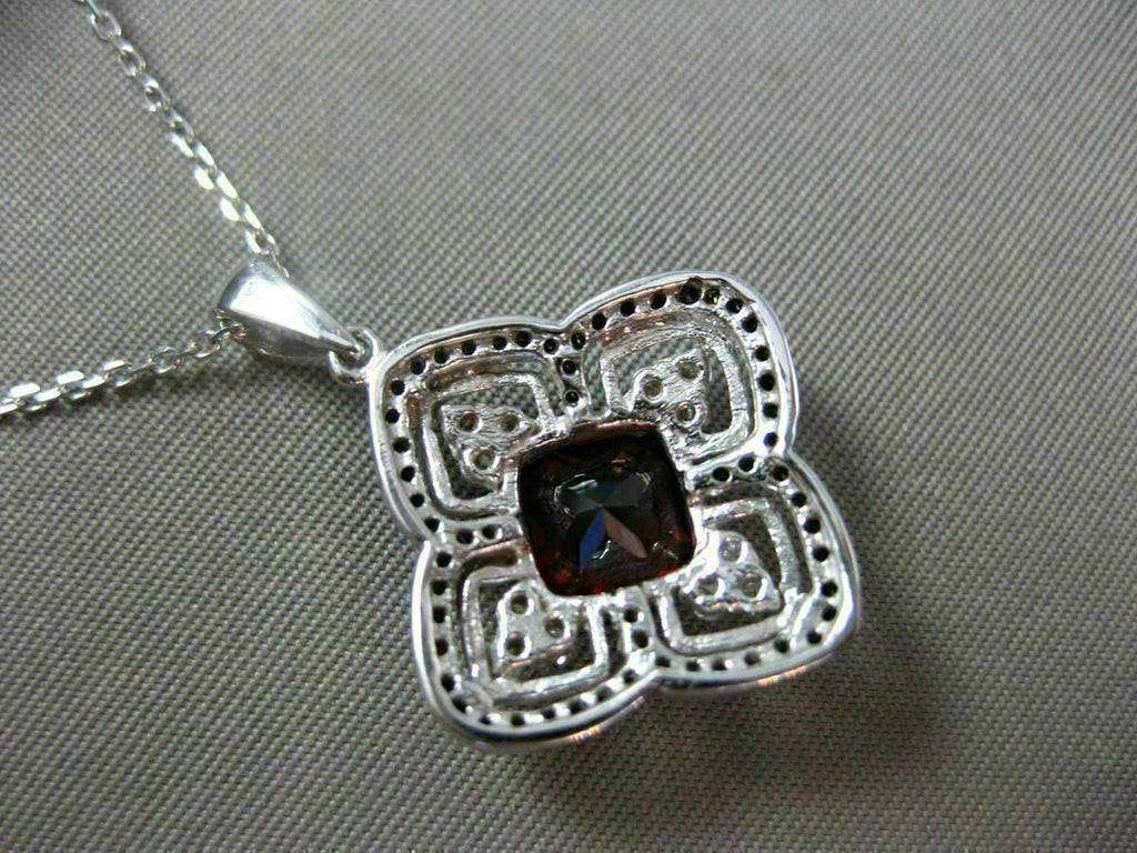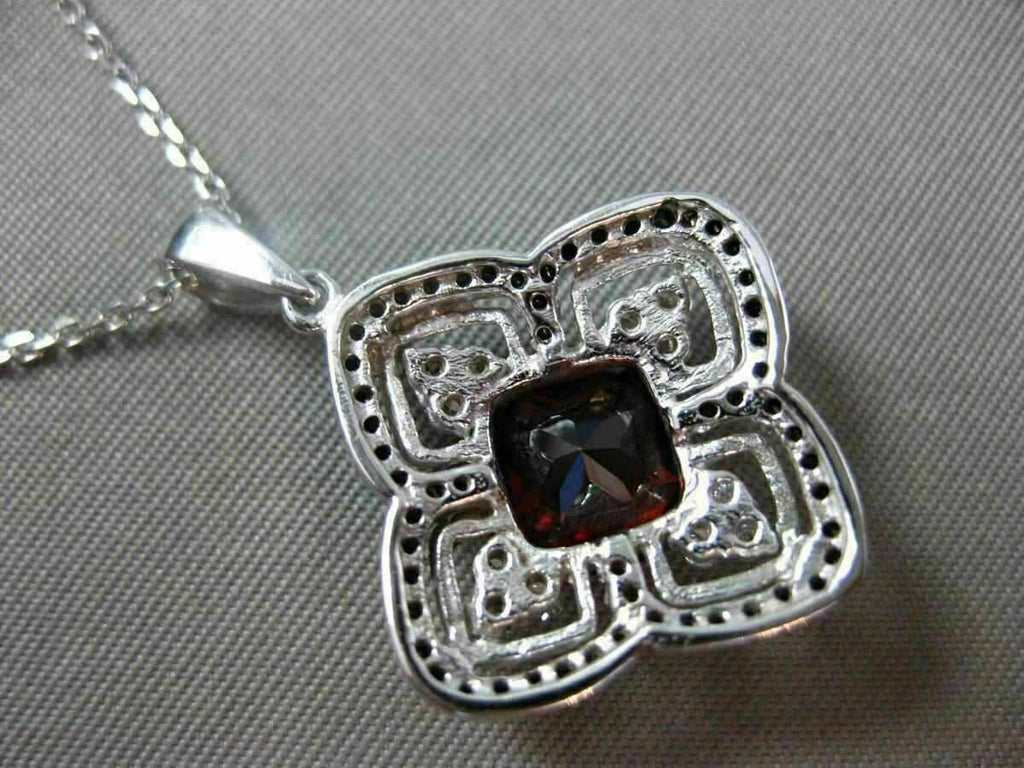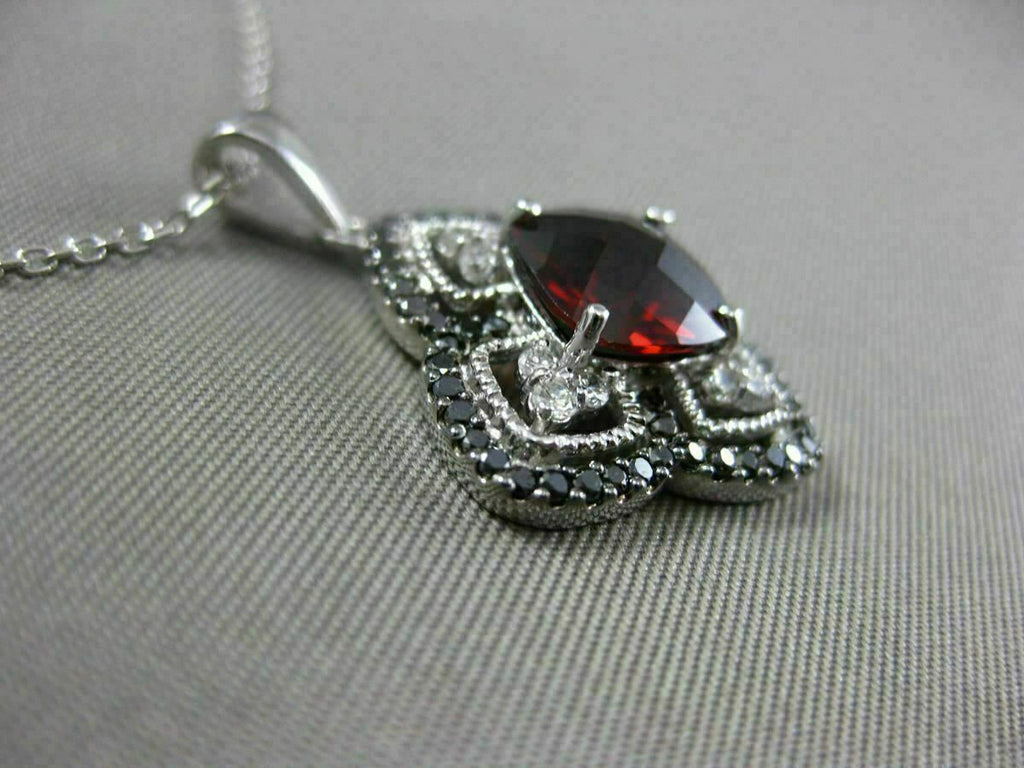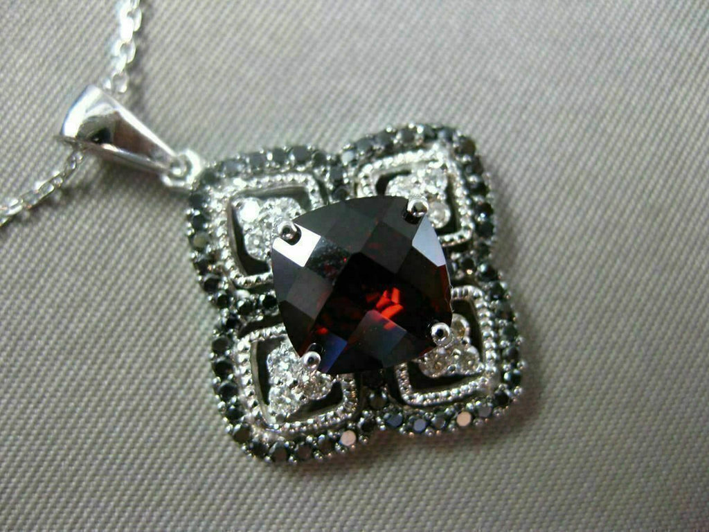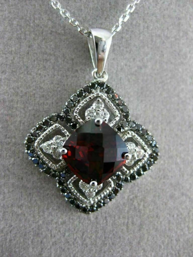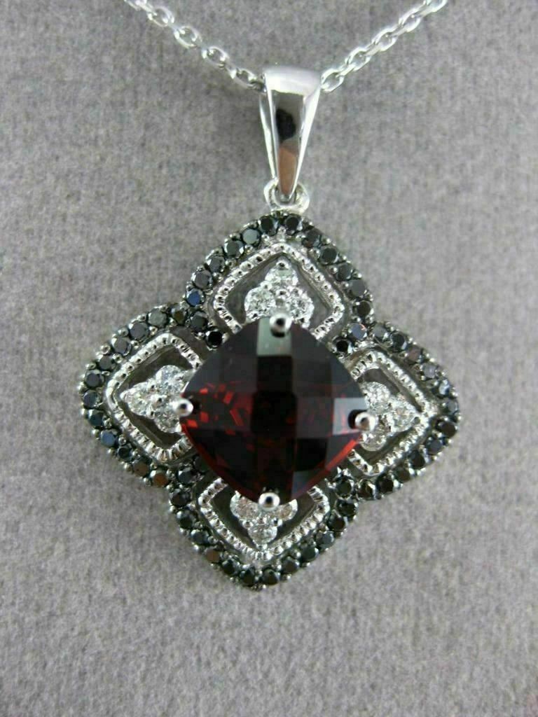 ESTATE 2.83CT WHITE & BLACK DIAMOND & GARNET 14K 2 TONE GOLD OPEN SQUARE PENDANT