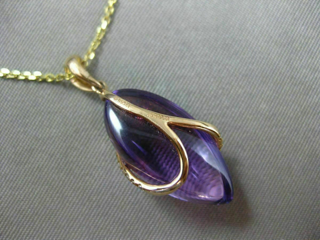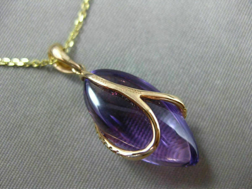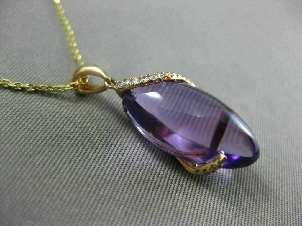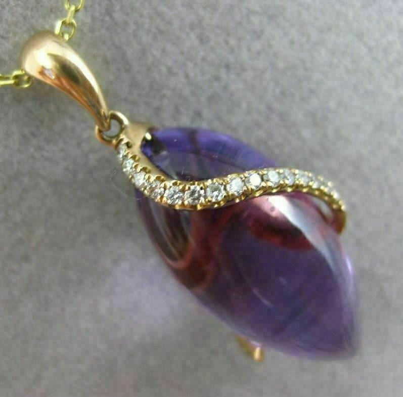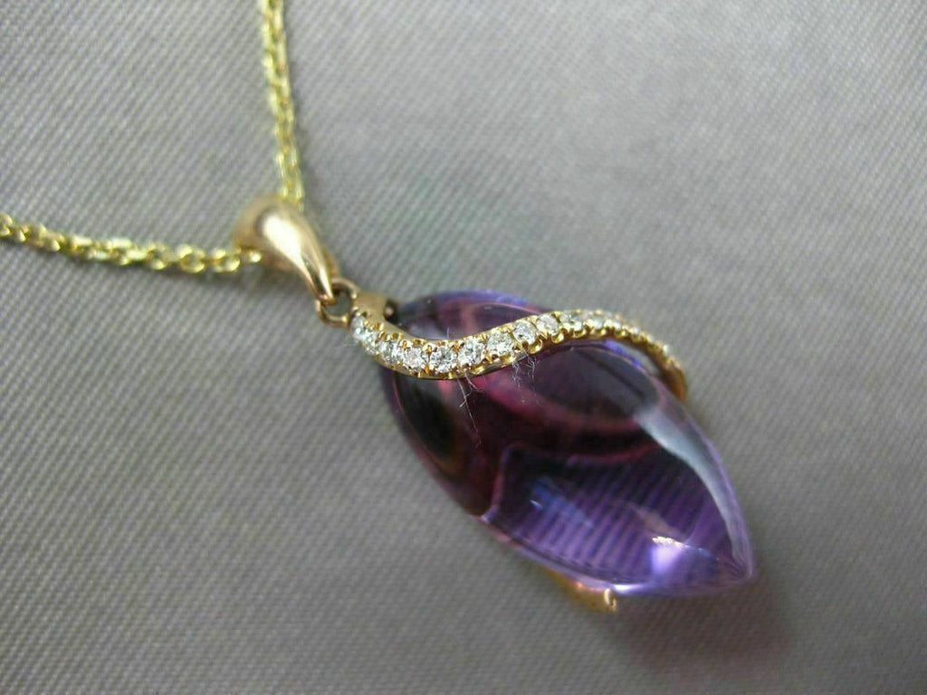 ESTATE 18KT ROSE GOLD FLOATING PENDANT. 3D MARQUISE SHAPE DESIGN. DIAMONDS ARE F/G COLOR, VVSI CLARITY .11 CARATS. AAA AMETHYST IS 9.69 CARATS. MEASURES 26.5mm x 10.5mm WIDE. COMES ON A 14KT GOLD DIAMOND CUT 16" INCH CHAIN. WRITTEN APPRAISAL AVAILABLE. COMES IN A PRESENTABLE GIFT BOX.
