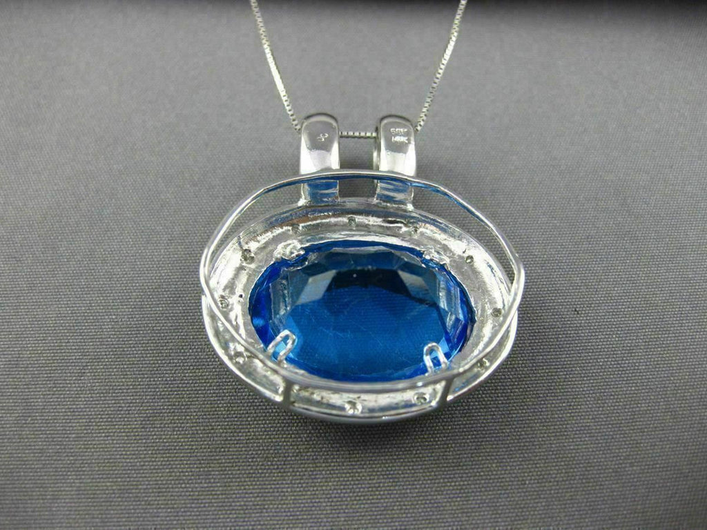 ESTATE EXTRA LARGE 45.25CT DIAMOND & BLUE TOPAZ 14K WHITE GOLD HALO OVAL PENDANT
