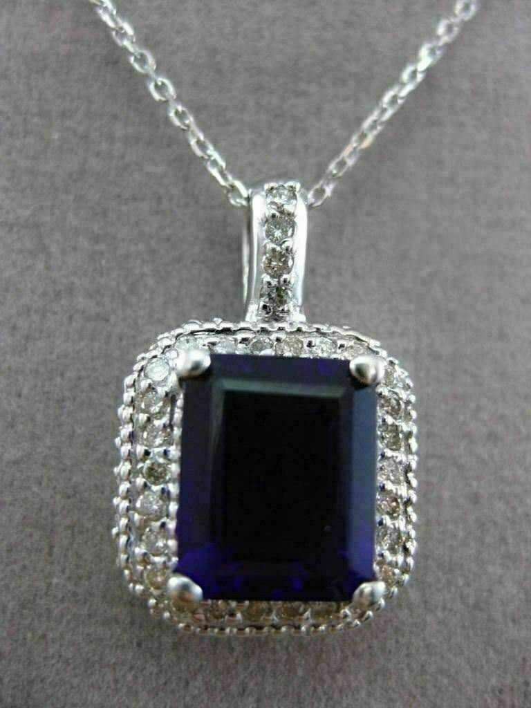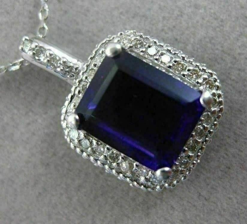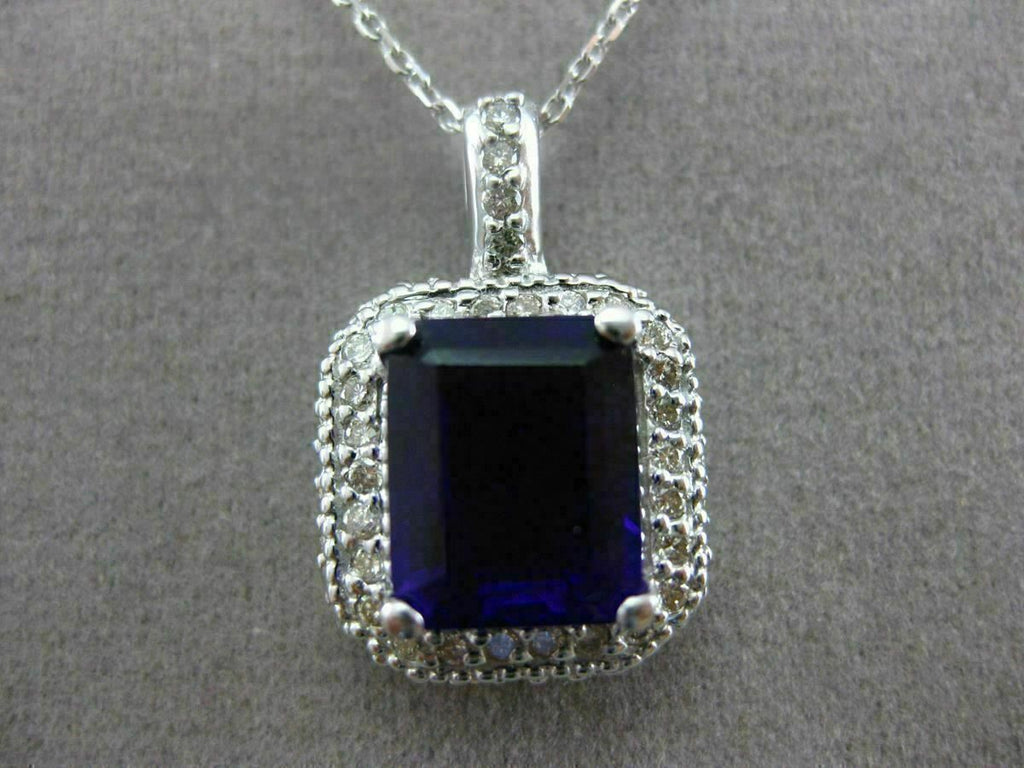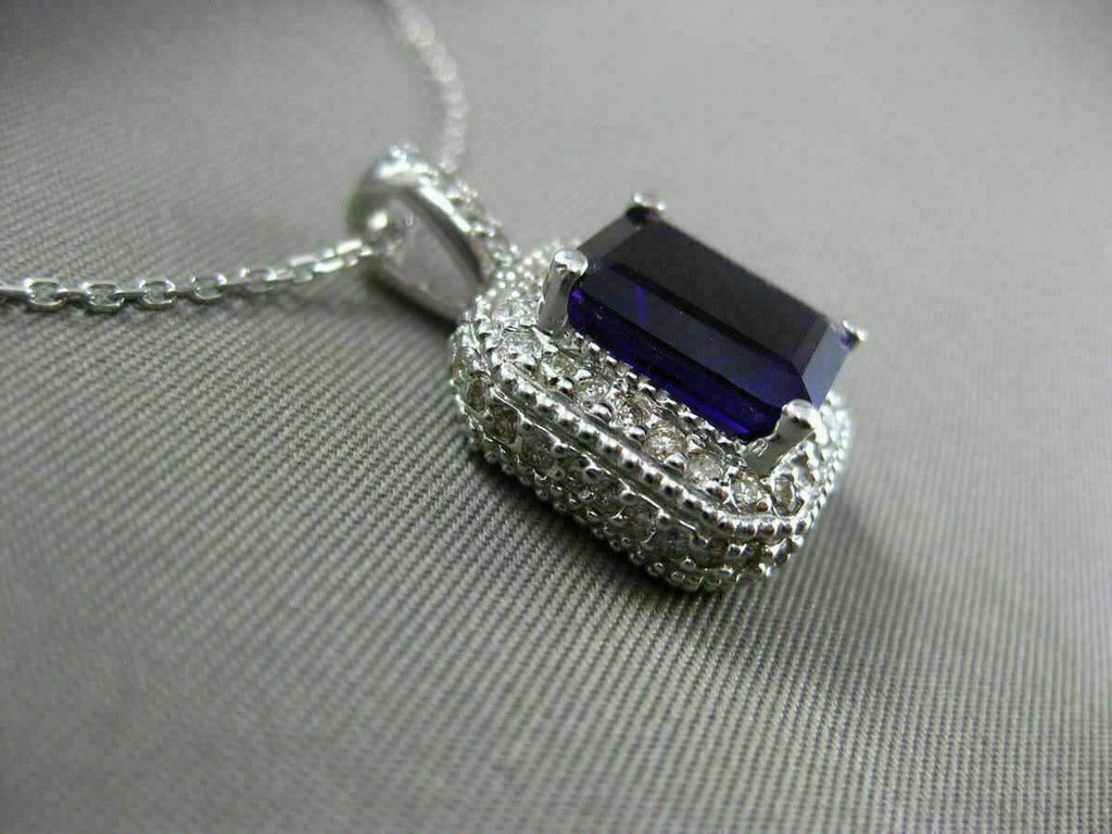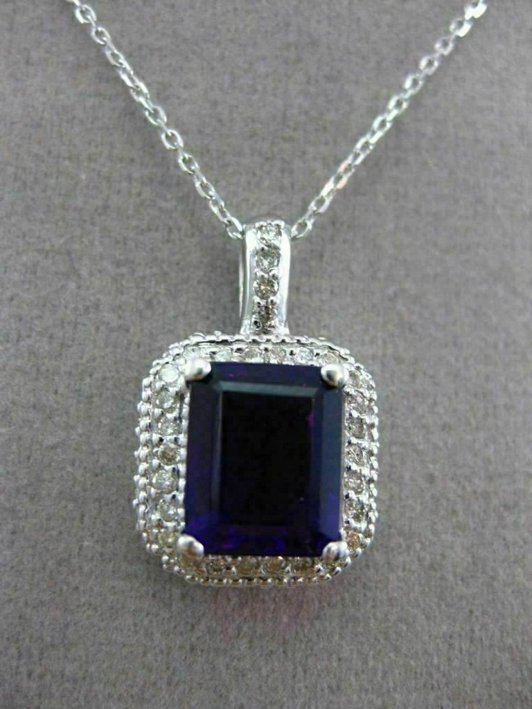 ESTATE LARGE 14KT WHITE GOLD FLOATING PENDANT. 3D FILIGREE MILGRAIN HALO EMERALD CUT DESIGN. DIAMONDS ARE F/G COLOR, VVSI CLARITY .61 CARATS. EXTRA FACET AMETHYST IS 4.0 CARATS. MEASURES 21.5mm x 14mm WIDE. COMES ON A 14KT GOLD DIAMOND CUT 16" INCH CHAIN. WRITTEN APPRAISAL AVAILABLE. COMES IN A PRESENTABLE GIFT BOX.