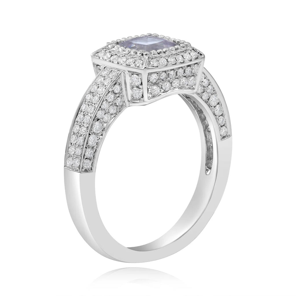 14KT WHITE GOLD FRIENDSHIP LOVE RING. 3D CLASSIC HALO DESIGN. ROUND DIAMONDS ARE F/G COLOR, VSSI CLARITY .71 CARATS. AAA EXTRA FACETED CUSHION CUT PINK AMETHYST IS .87 CARATS. RING SIZE 7. CAN BE SIZED BY OUR MASTER JEWELER UPON REQUEST. WRITTEN APPRAISAL AVAILABLE. COMES IN A PRESENTABLE GIFT BOX.