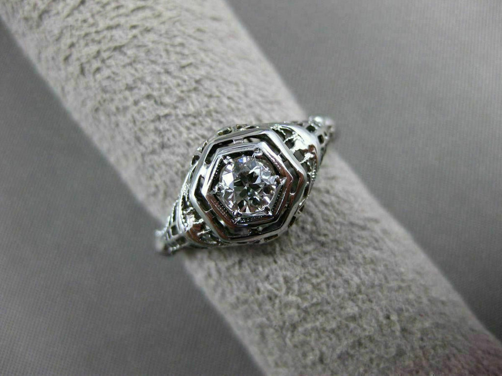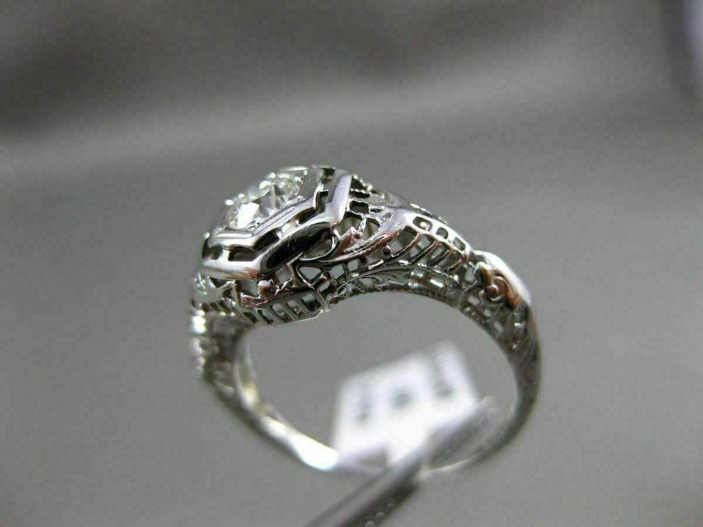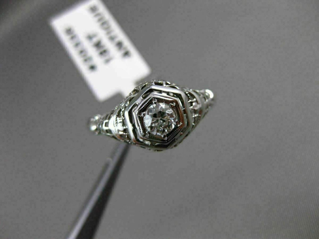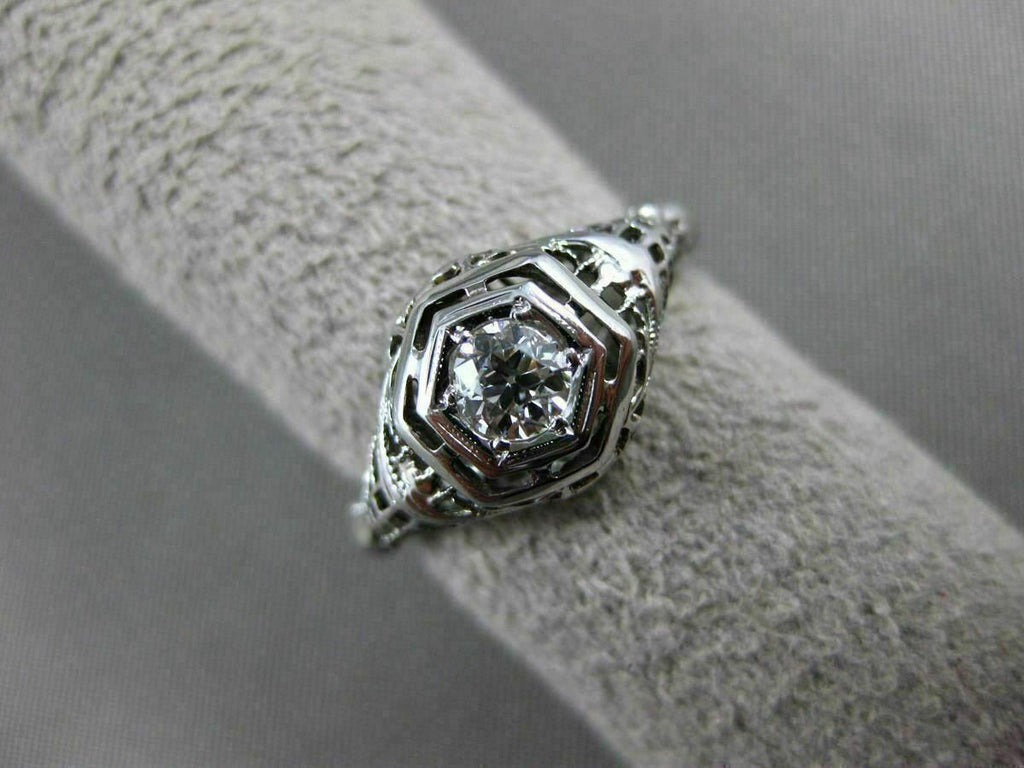 ANTIQUE .40CT OLD MINE DIAMOND 18KT WHITE GOLD 3D FILIGREE ENGAGEMENT RING 20335