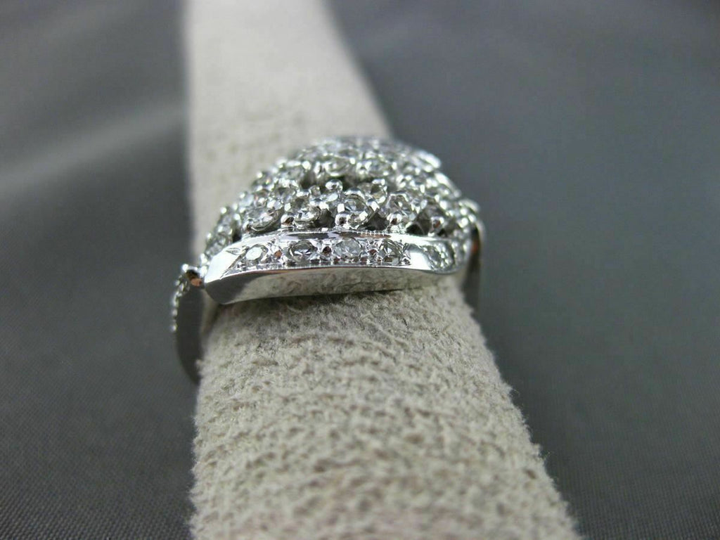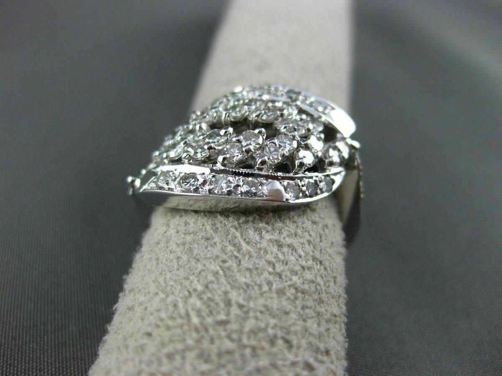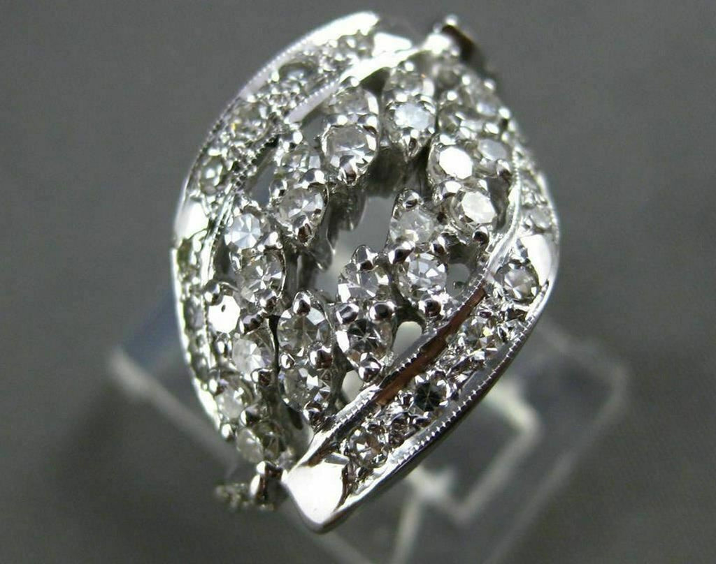 ANTIQUE WIDE 14KT WHITE GOLD FANCY RING. OPEN DESIGN. OLD MINE DIAMONDS ARE F/G COLOR, VS CLARITY .64 CARATS. MEASURES 14mm X 21mm. RING SIZE 6.25. CAN BE SIZED BY OUR MASTER JEWELER. WRITTEN APPRAISAL AVAILABLE. COMES IN A PRESENTABLE GIFT BOX
