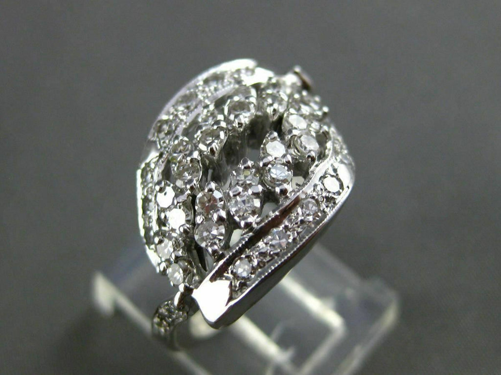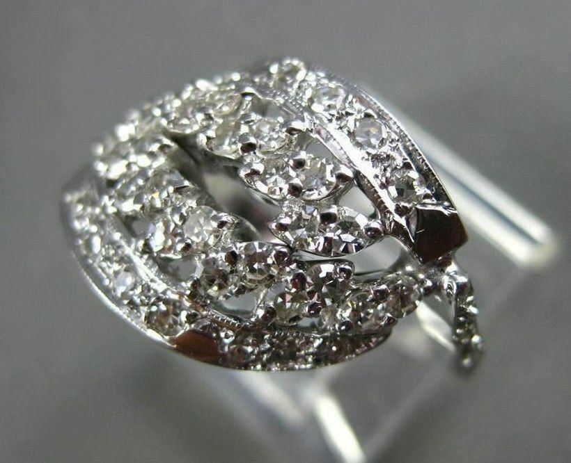 ANTIQUE WIDE .64CT ROUND OLD MINE DIAMOND 14KT WHITE GOLD OPEN FANCY RING #19541