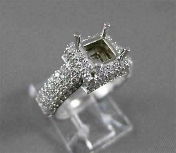 ESTATE 14KT WHITE GOLD SEMI MOUNT ENGAGEMENT RING. DIAMONDS ARE F/G COLOR, VVS/VS CLARITY, 1.64 CARATS. PAVE SETTING WITH DIAMONDS DOWN THE SIDES. TOP MEASURES 9MM x 9MM. RING IS SIZE 6.50. CAN BE SIZED BY OUR MASTER JEWELER. CENTER SETTING CAN FIT UP TO 1.00-1.50CT ROUND OR PRINCESS DIAMOND. WRITTEN APPRAISAL AVAILABLE. COMES IN A PRESENTABLE GIFT BOX