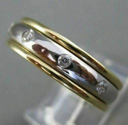 ESTATE 14KT WHITE & YELLOW GOLD ANNIVERSARY RING. ETOILE ETERNITY DESIGN. DIAMONDS ARE F/G COLOR, VS CLARITY .50CARATS. 6MM WIDE. RING SIZE 10. SIZING CAN BE PROVIDED BY OUR MASTER JEWELER. WRITTEN APPRAISAL AVAILABLE. COMES IN A PRESENTABLE GIFT BOX