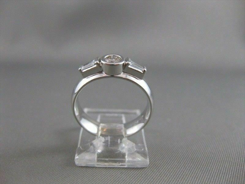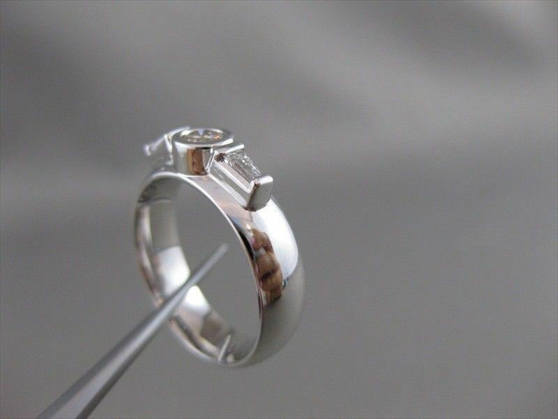 ESTATE DIAMOND 14K WHITE GOLD 3 STONE BEZEL ROUND ENGAGEMENT RING 5MM WIDE 20724