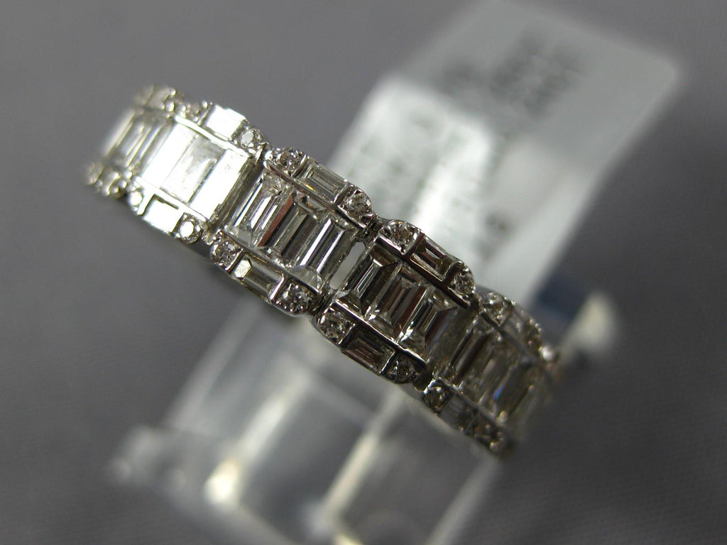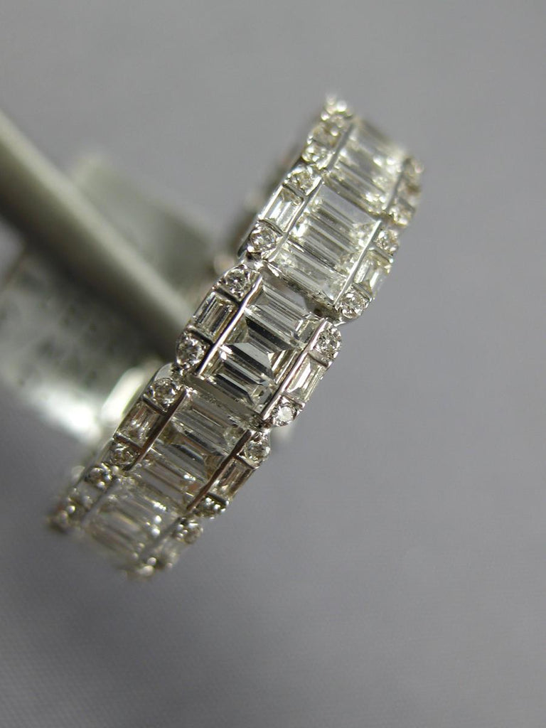 ESTATE 18KT WHITEGOLD ANNIVERSARYRING. 3D INVISIBLE SQUARE ETERNITYDESIGN. ROUND AND BAGUETTEDIAMONDS ARE F/G COLOR, VS CLARITY 1.49CARATS.MEASURES 4mmWIDE. RING SIZE 6. CAN BE SIZED BY OUR MASTER JEWELER UPON REQUEST. WRITTEN APPRAISAL AVAILABLE. COMES IN A PRESENTABLE GIFT BOX.