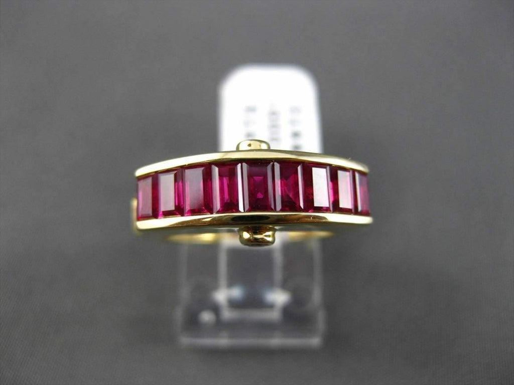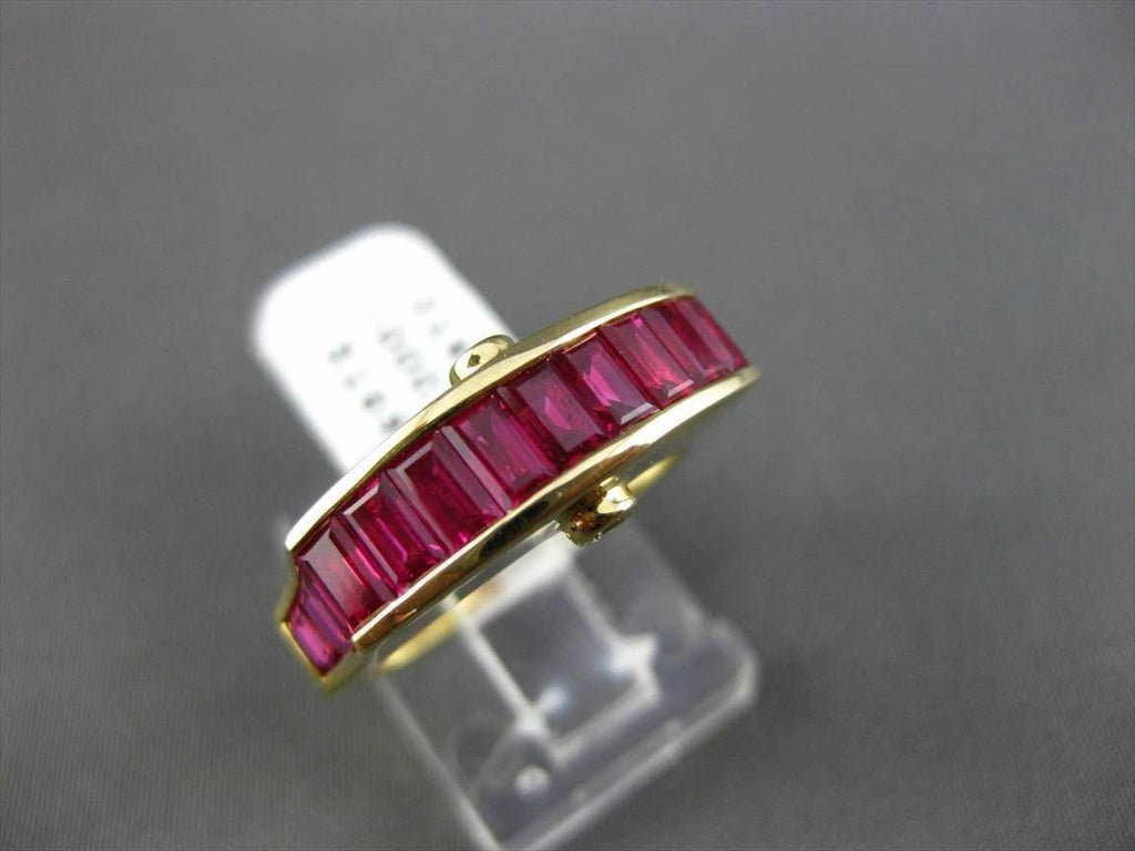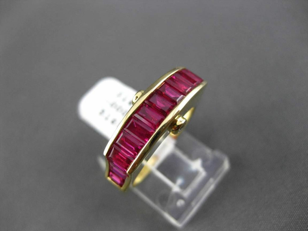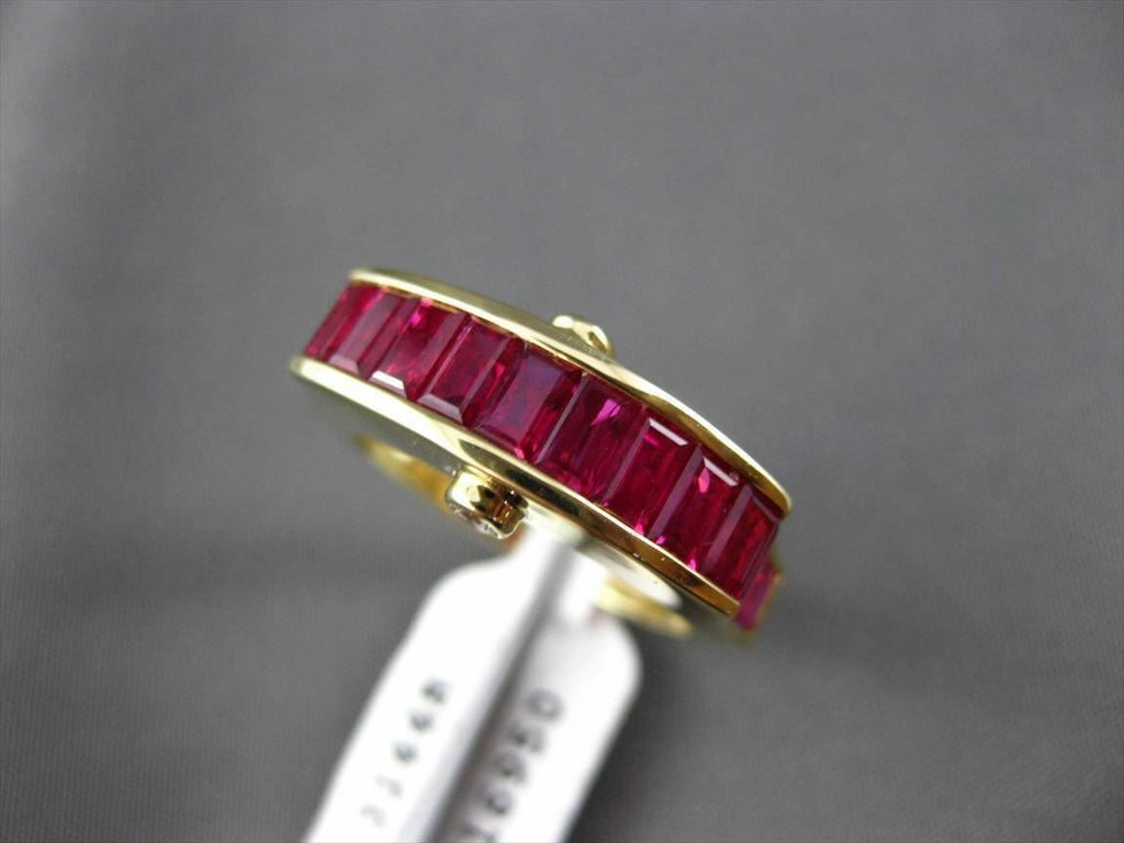 ESTATE 18KT YELLOW GOLD WEDDING ANNIVERSARY RING. 3D ETOILE DESIGN. DIAMONDS ARE F/G COLOR, VS/VVS CLARITY .07 CARATS. AAA RUBY IS 2.65 CARATS. MEASURES 8MM WIDE. RING SIZE IS 6.5. CAN BE SIZED BY OUR MASTER JEWELER. WRITTEN APPRAISAL AVAILABLE. COMES IN A PRESENTABLE GIFT BOX.